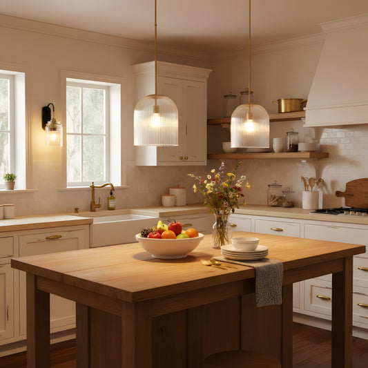 Vireo Farmhouse Cooper Ribbed Glass Pendant Light