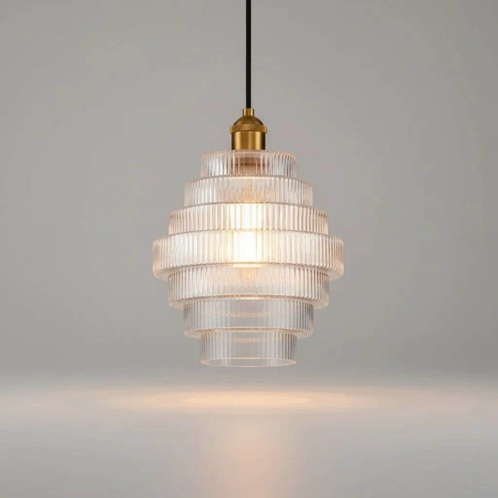🔸 Ribbed glass shade adds texture and softly diffuses light for a unique glow