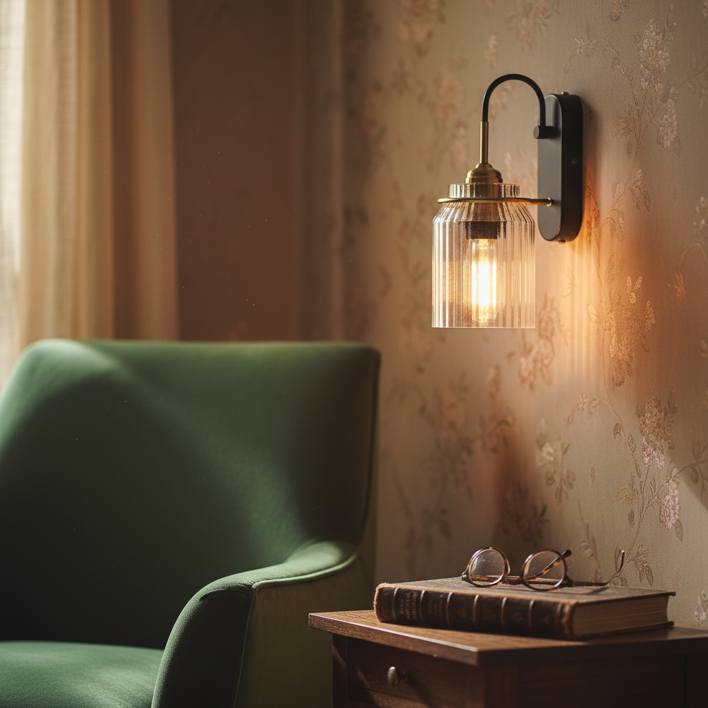 The Momus Wall Sconce combines sleek metalwork with ribbed glass shades for a sophisticated glow. Install it up or down to suit your style. Perfect for bathrooms, hallways, bedrooms, and dining spaces.