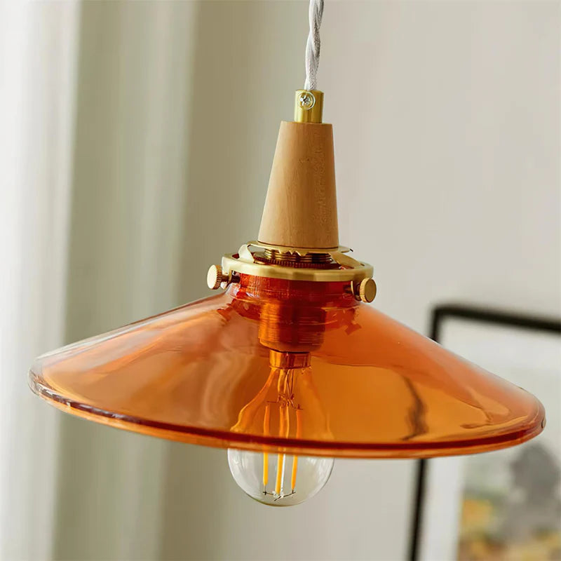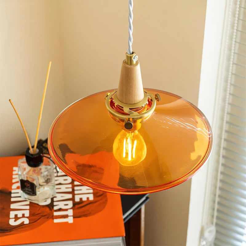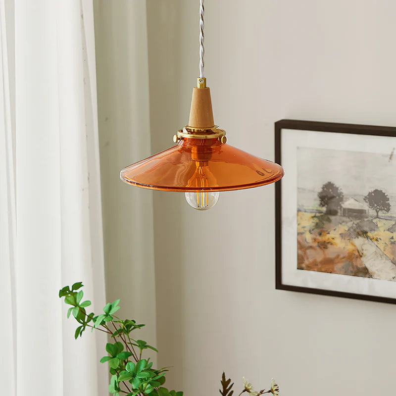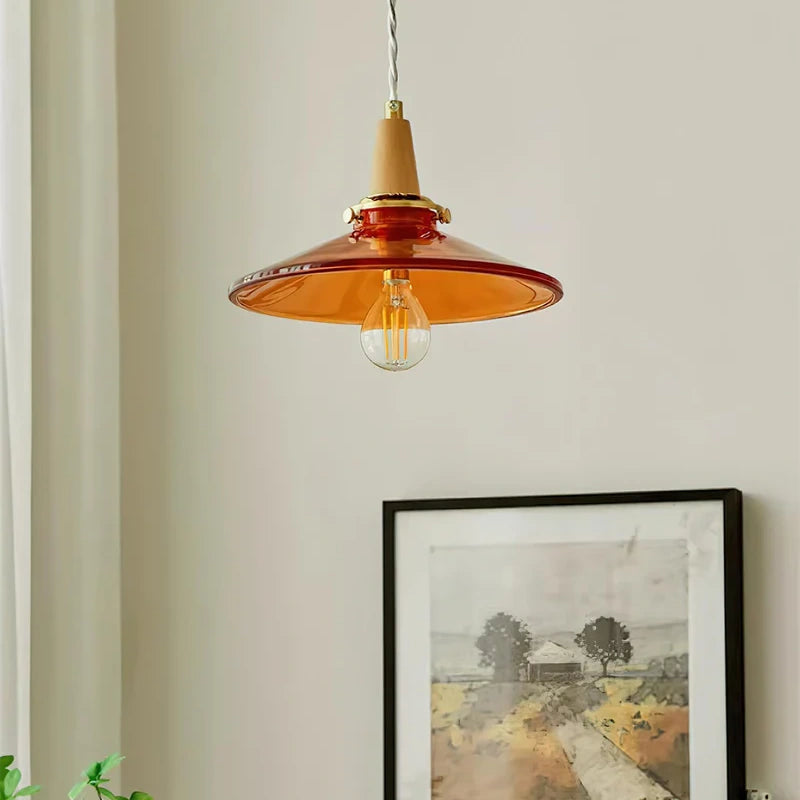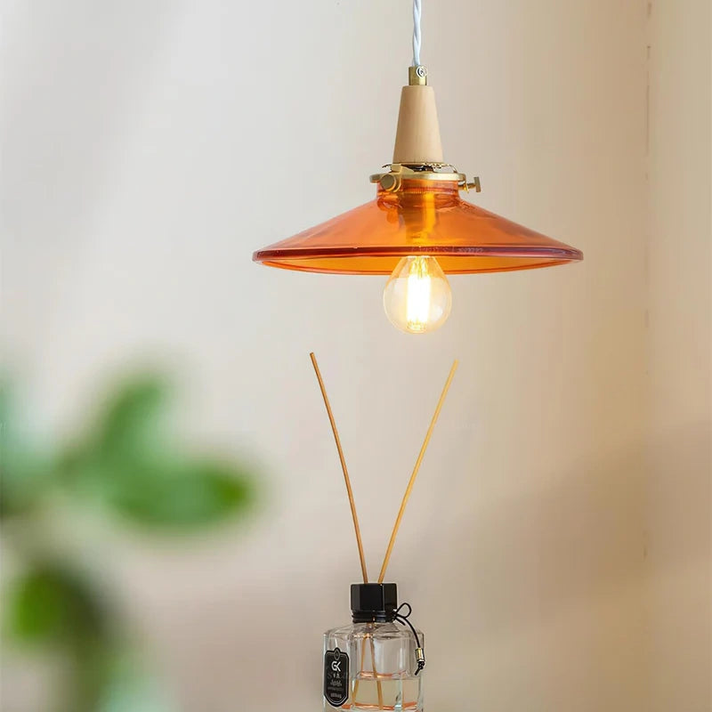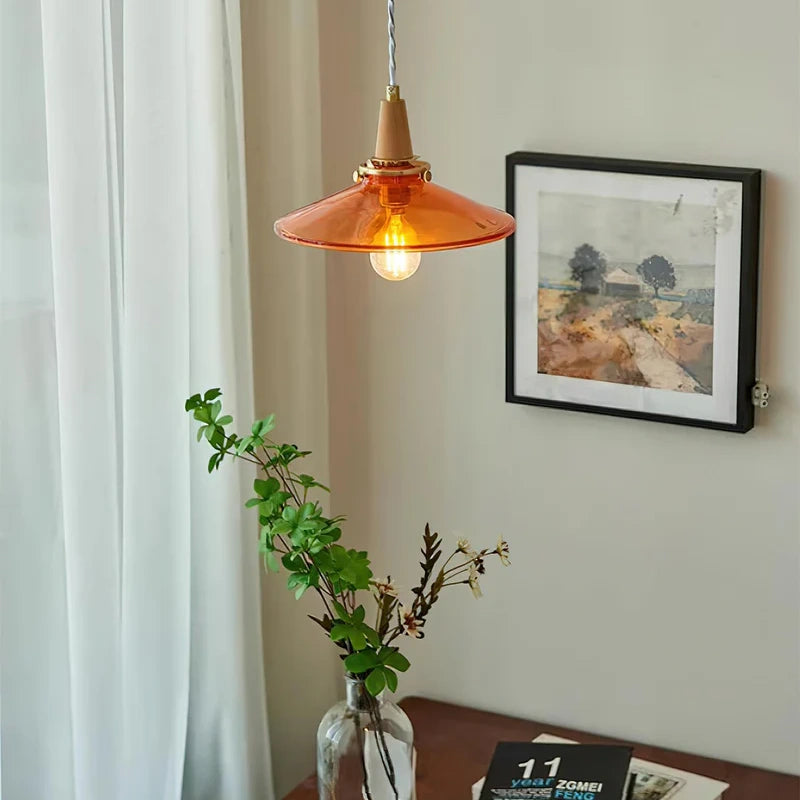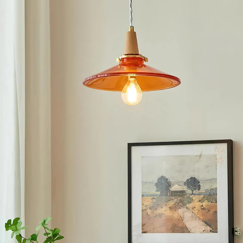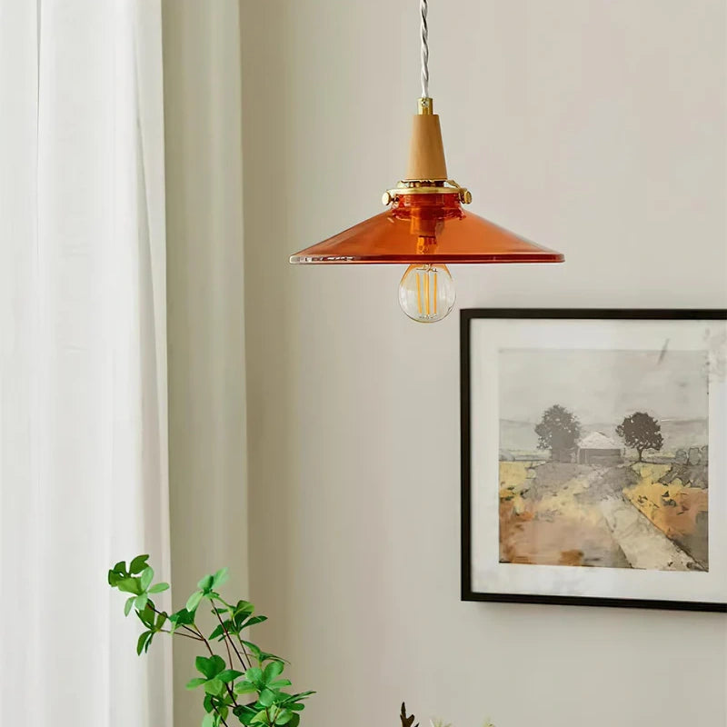 The Stilbon Pendant Light showcases a vibrant orange glass shade paired with a refined wooden top, bringing a splash of color and modern Nordic charm. Ideal for kitchens, dining rooms, or cozy cafés.