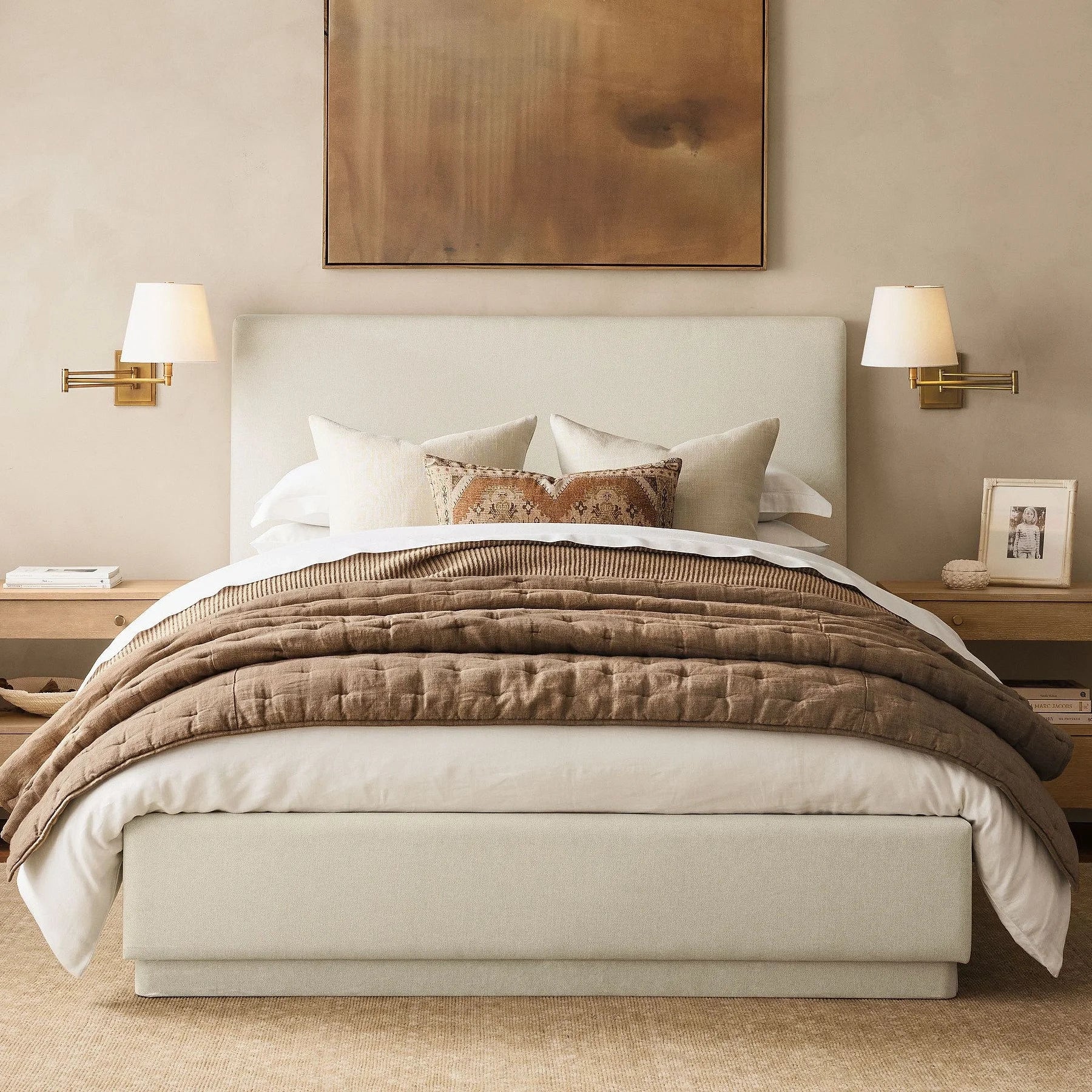 The Evarne Wall Sconce features a movable arm and crisp linen shade, blending style with functionality. Perfect for bedrooms, reading corners, or cozy living spaces.