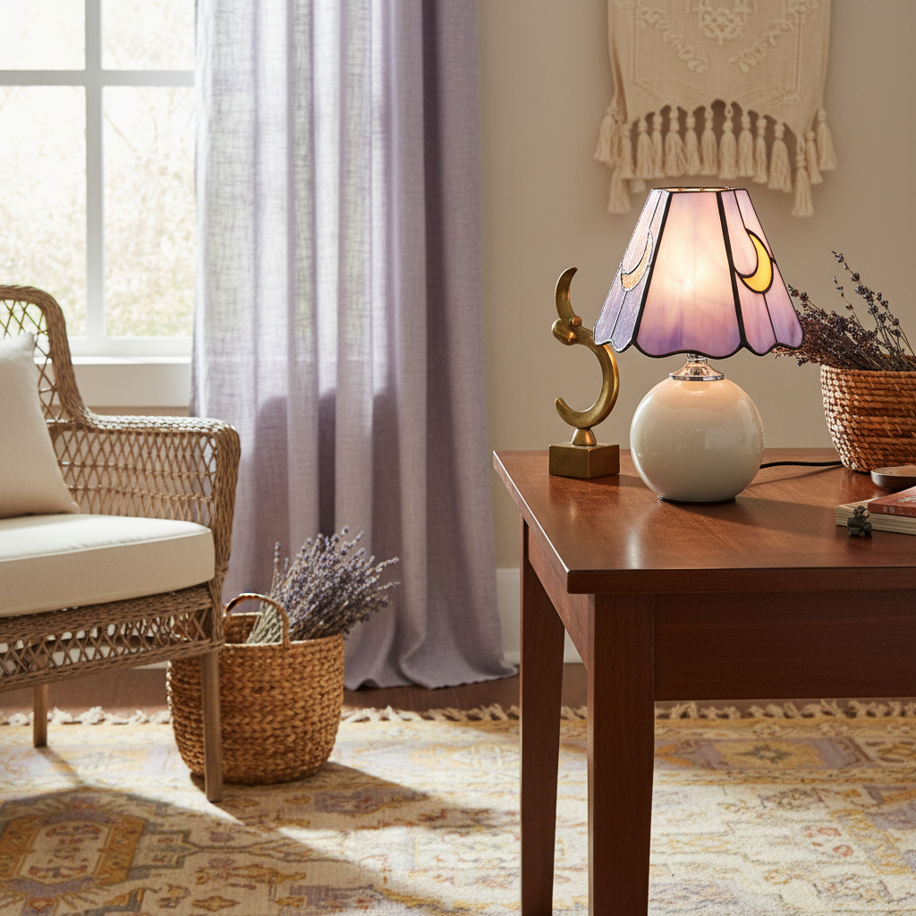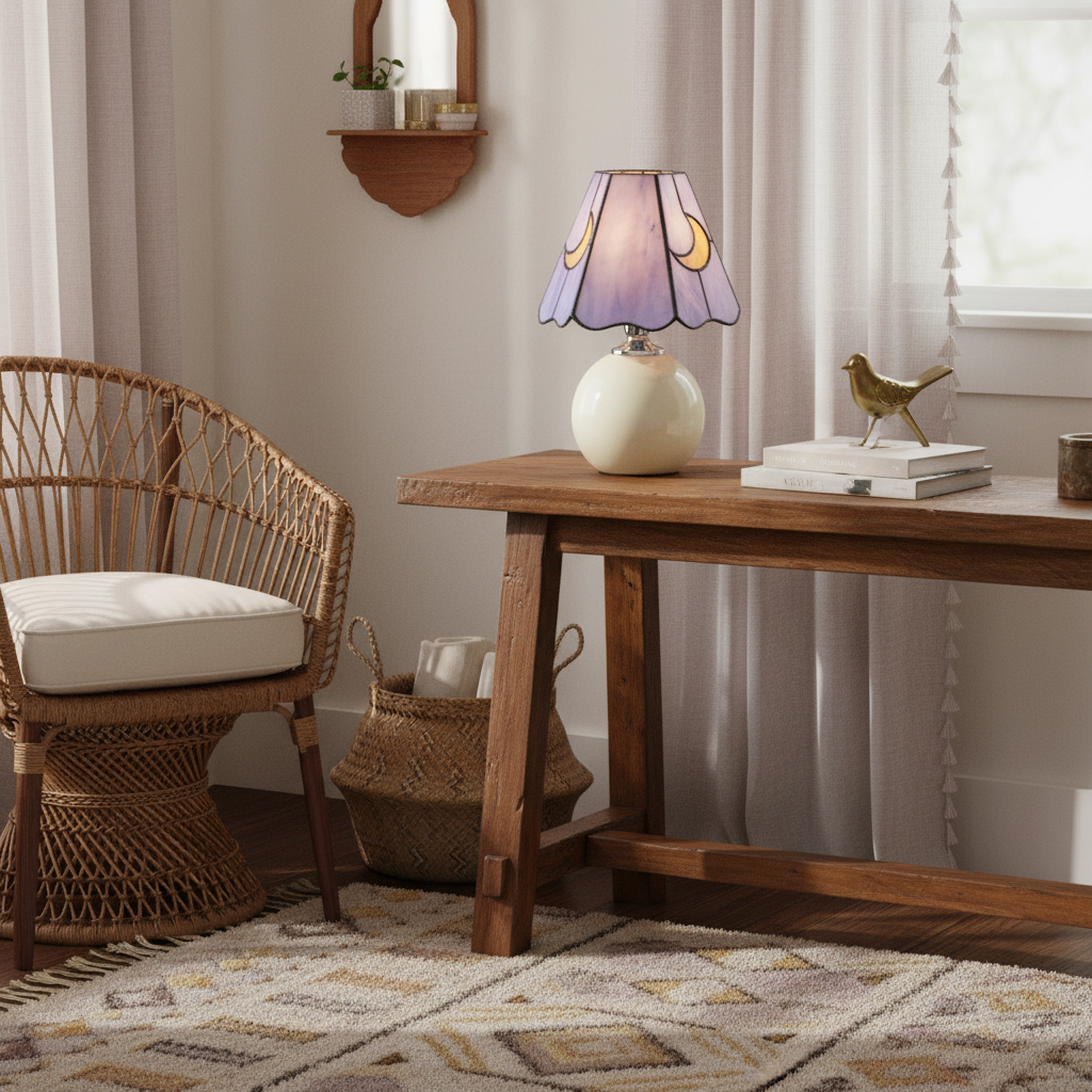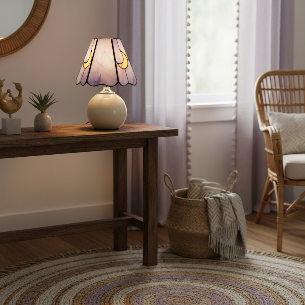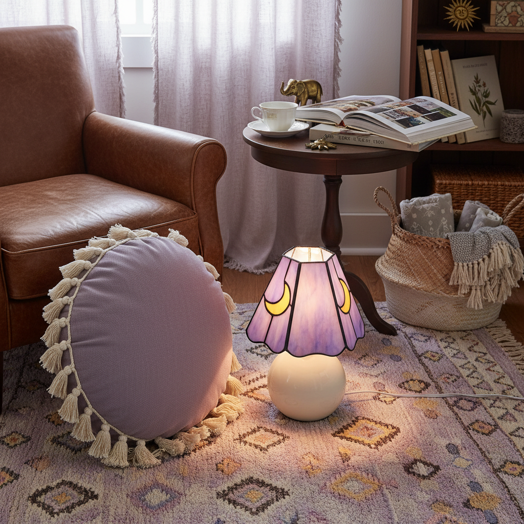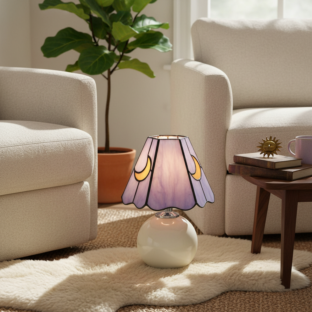 The Fiorella Mushroom Moon Table Light blends art and function with its ceramic mushroom base and moon-hued stained glass. Perfect as a moonlit night light or accent lamp for bedrooms, cabinets, and more.