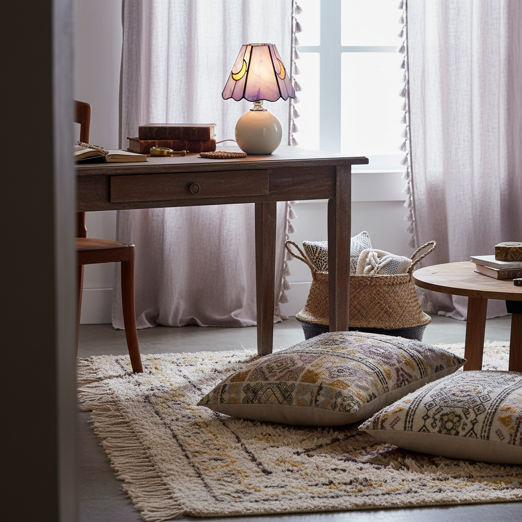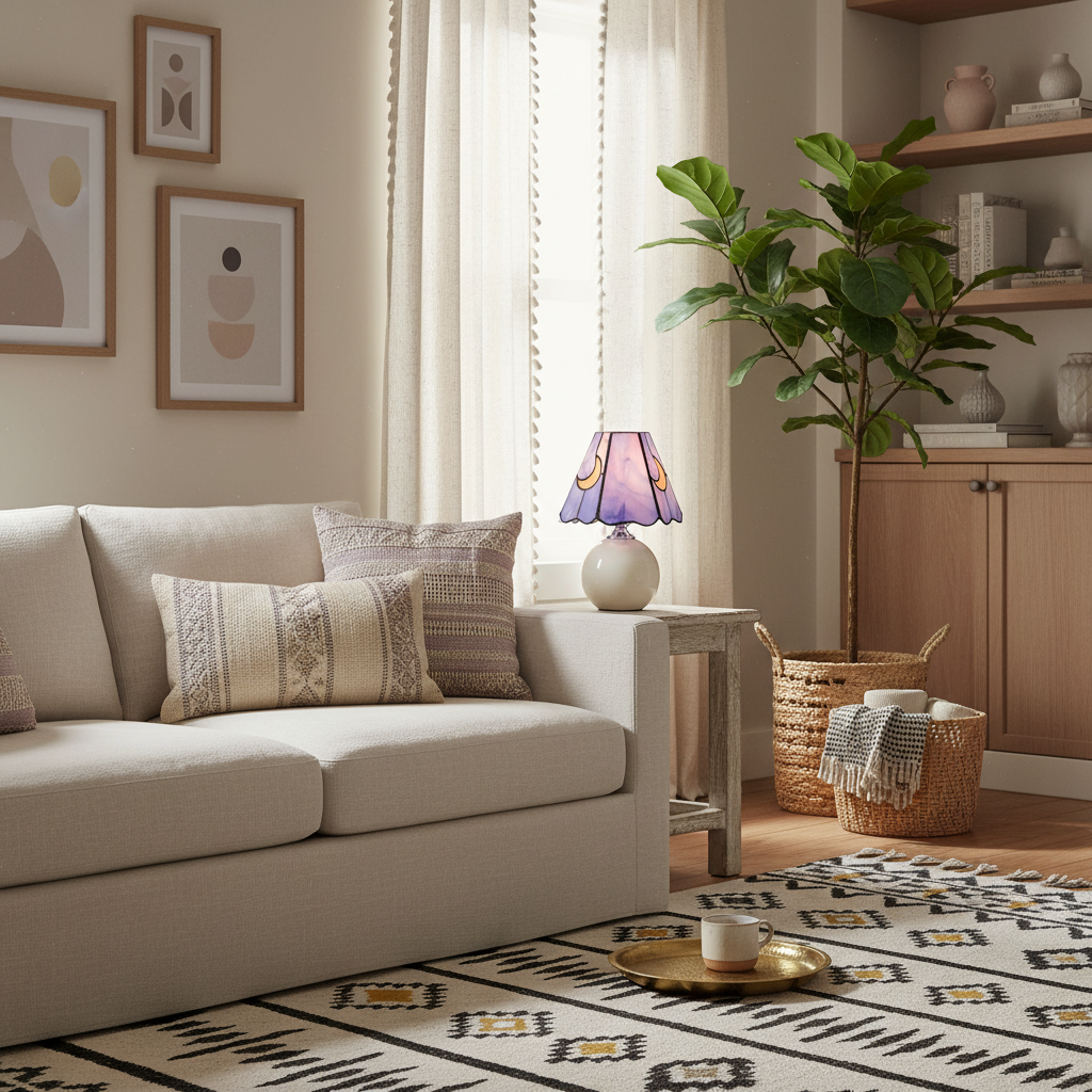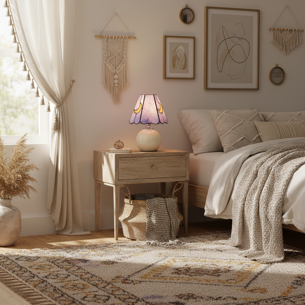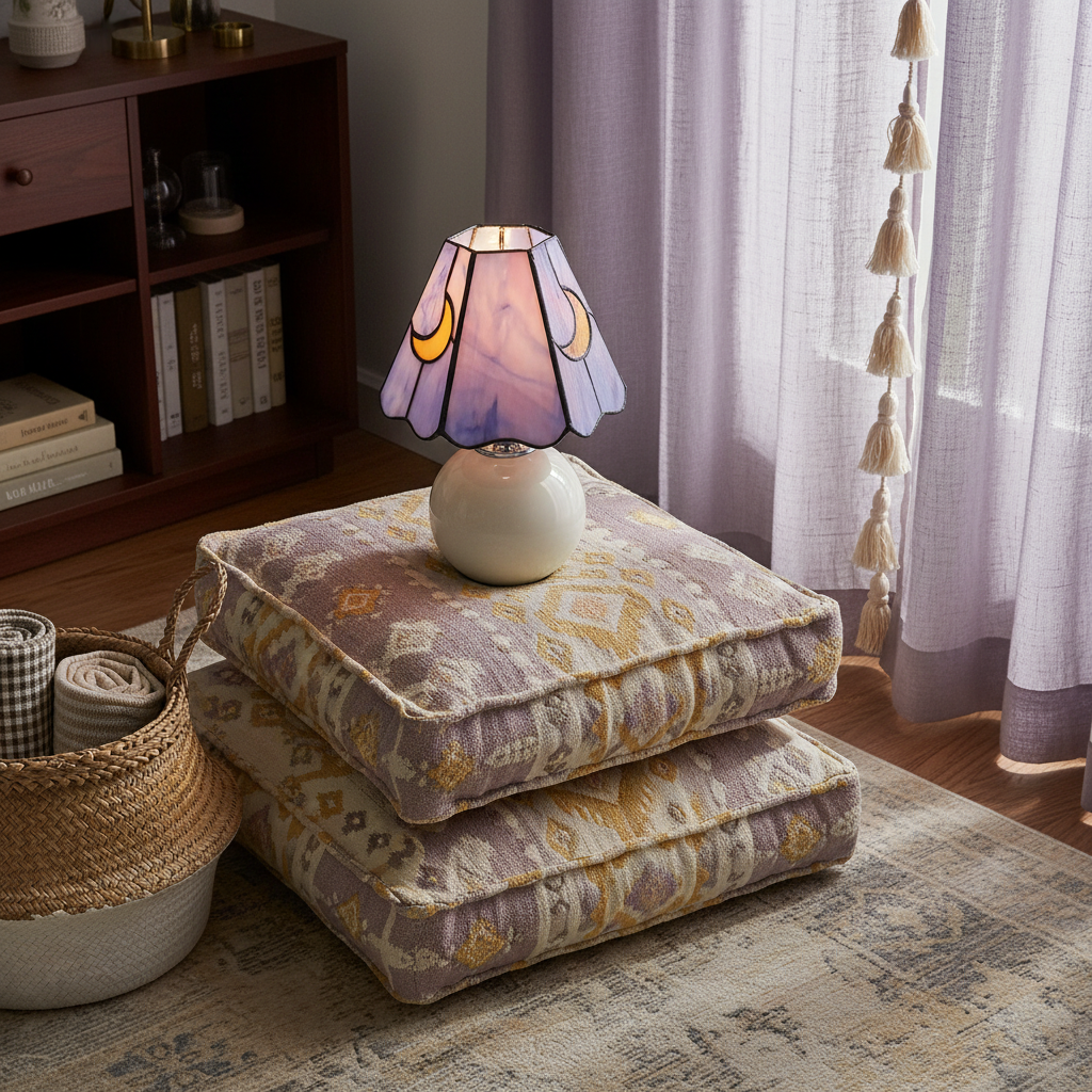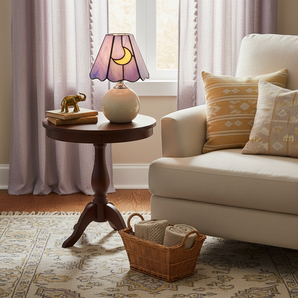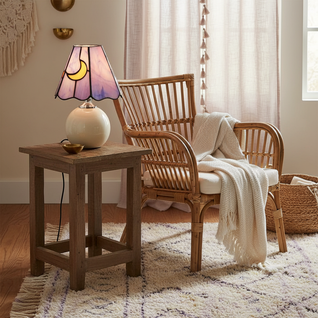 The Fiorella Mushroom Moon Table Light blends art and function with its ceramic mushroom base and moon-hued stained glass. Perfect as a moonlit night light or accent lamp for bedrooms, cabinets, and more.