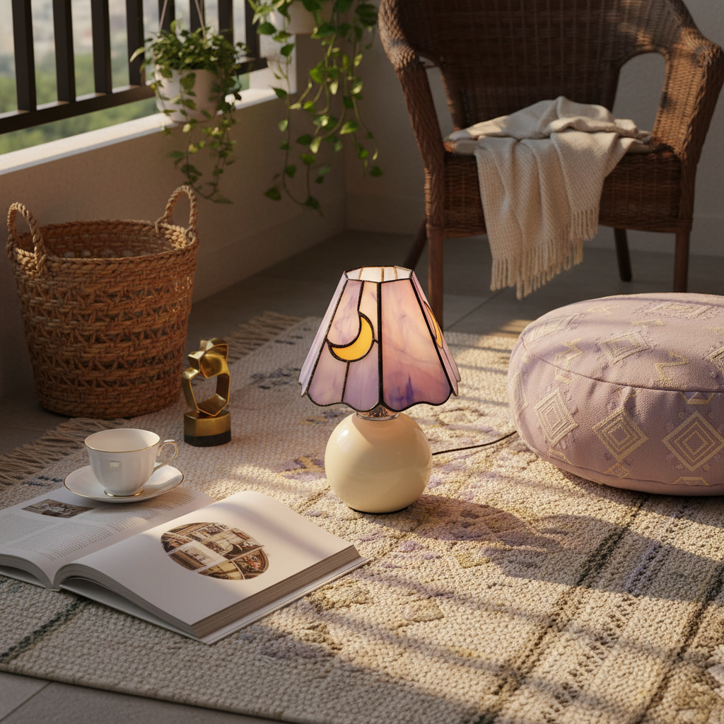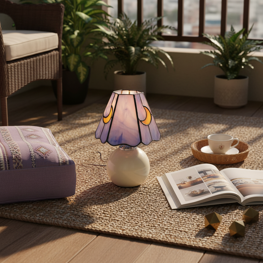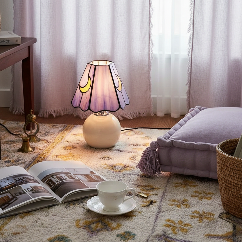 Fiorella Mushroom Moon Tiffany Stained Glass Table Light