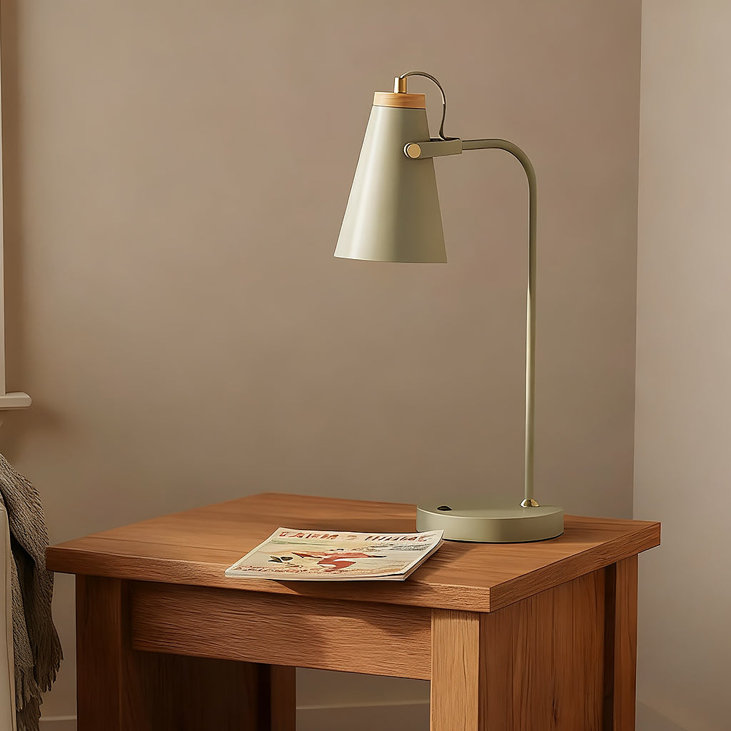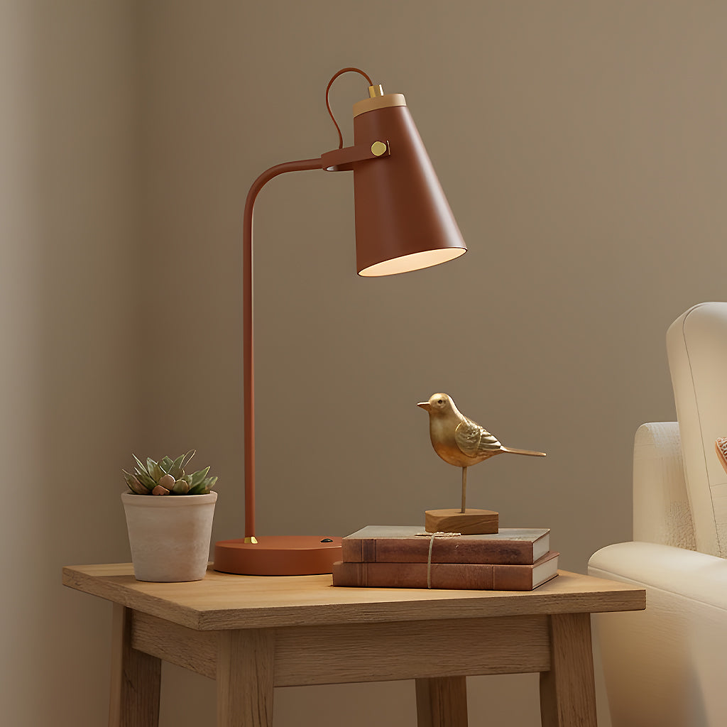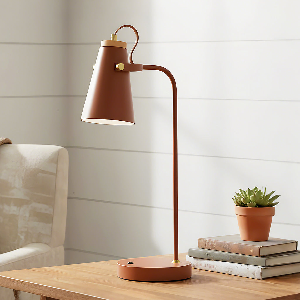 Upgrade your desk or bedside with this modern industrial lamp, featuring a metal shade, brass accents, and an adjustable head for targeted lighting. Its sleek design fits seamlessly into mid-century, modern, or industrial spaces. Perfect for reading, working, or studying, this durable lamp brings both style and function to any room.