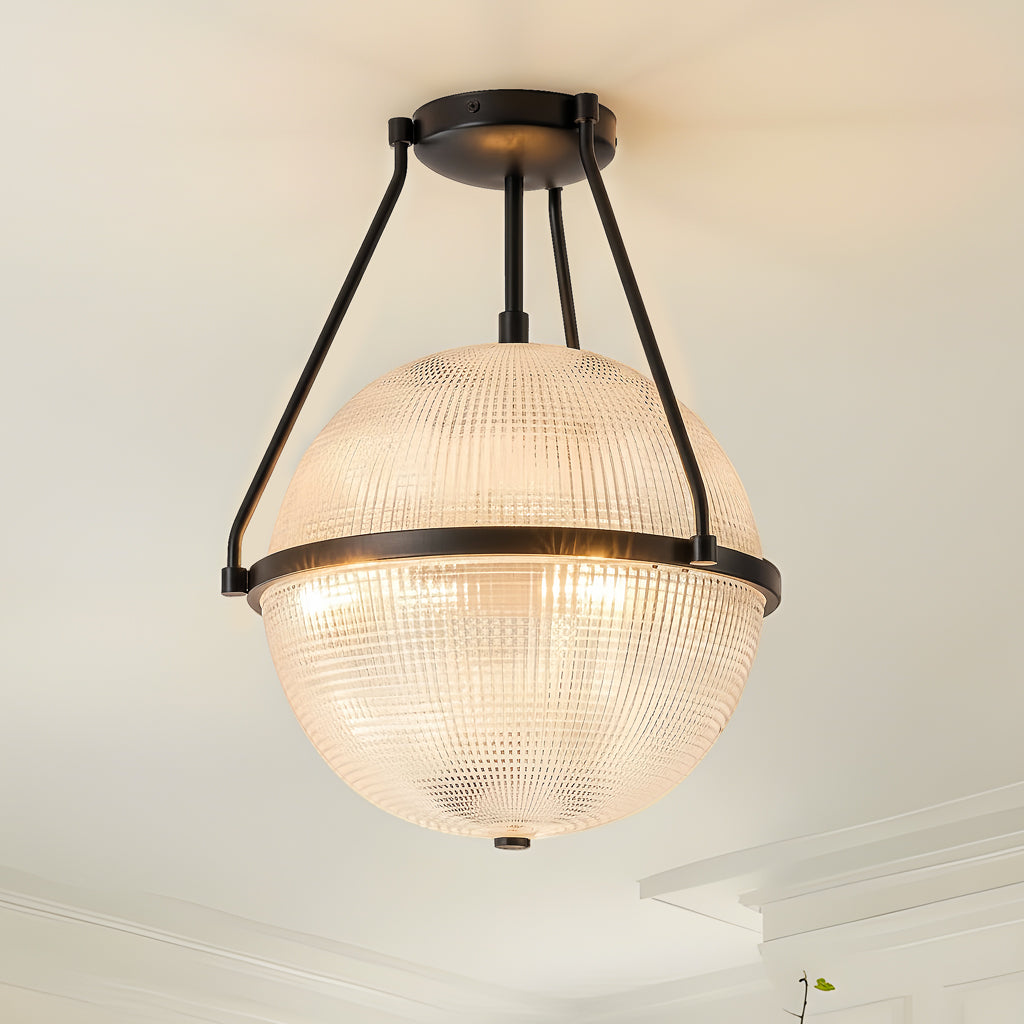 Athena Textured Globe Glass Semi Flush Mount Ceiling Light