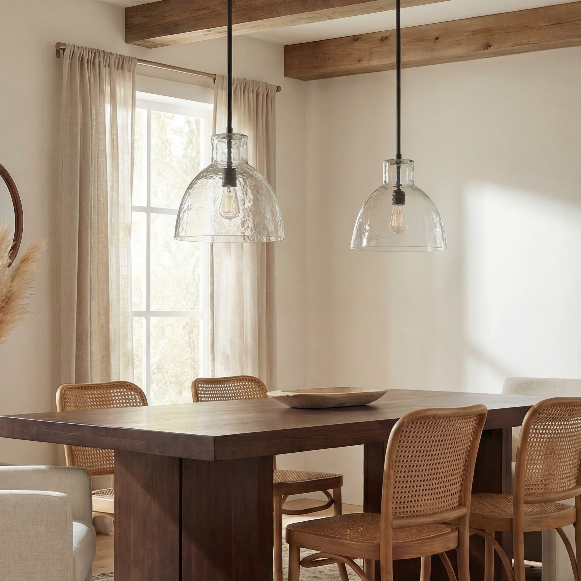Modern Farmhouse Curved Hammered Glass Pendant Light | Lucia Living