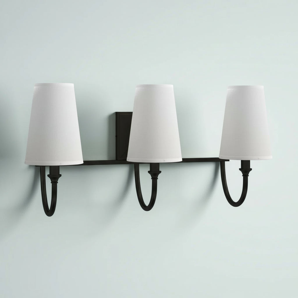 Aurora Modern Farmhouse 3-Light White Fabric Vanity Light