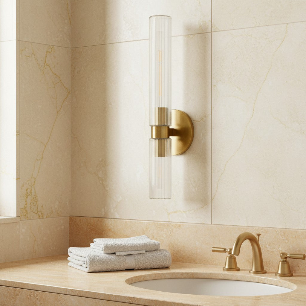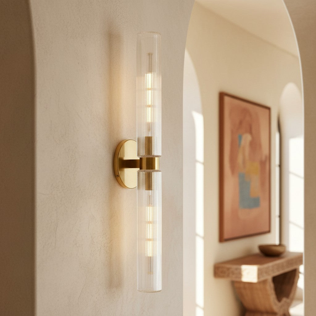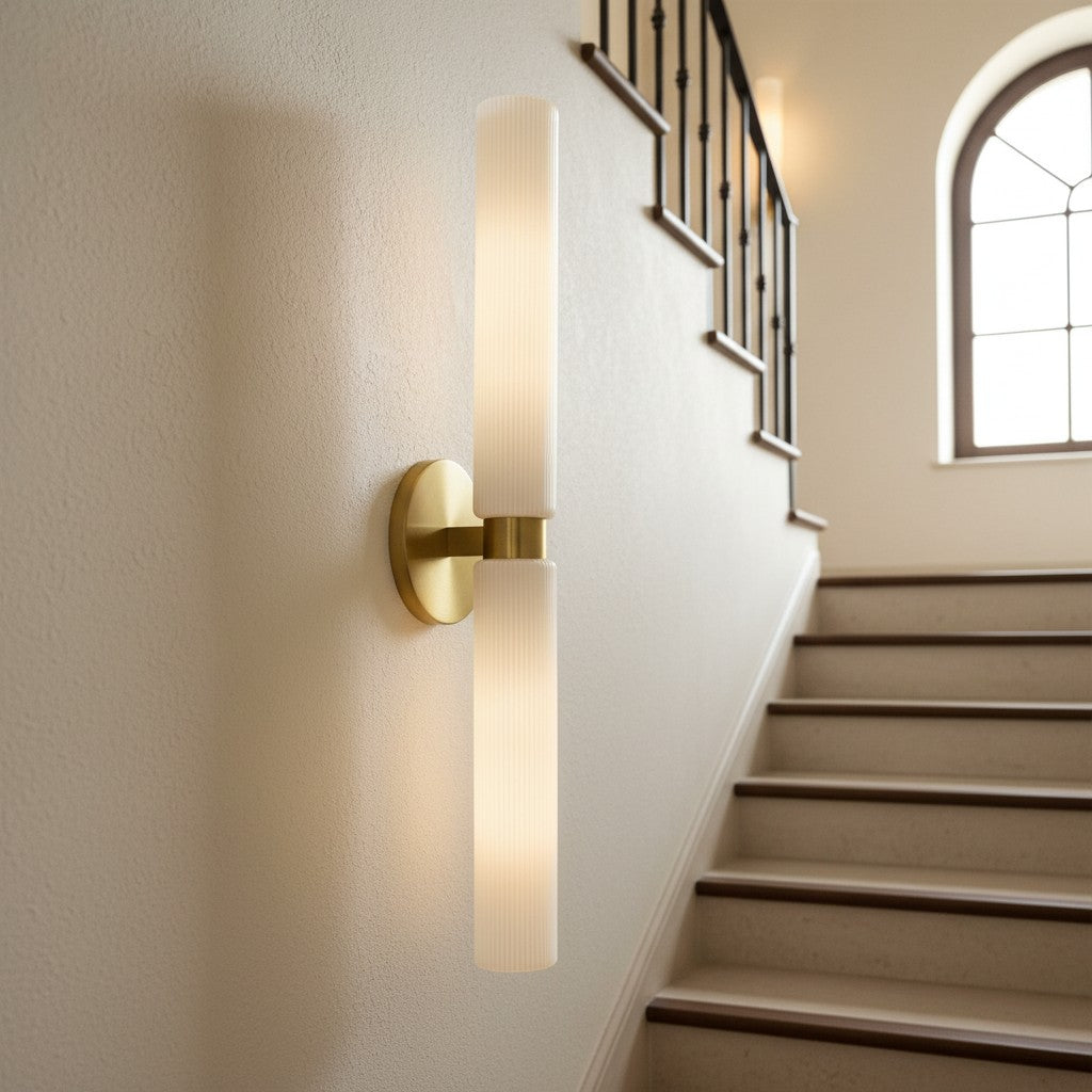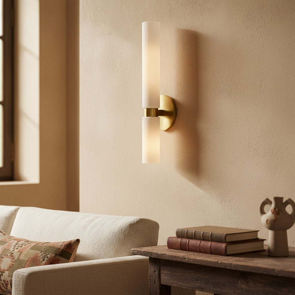 Bastian Modern Fluted Glass Double Asymmetrical Sconce