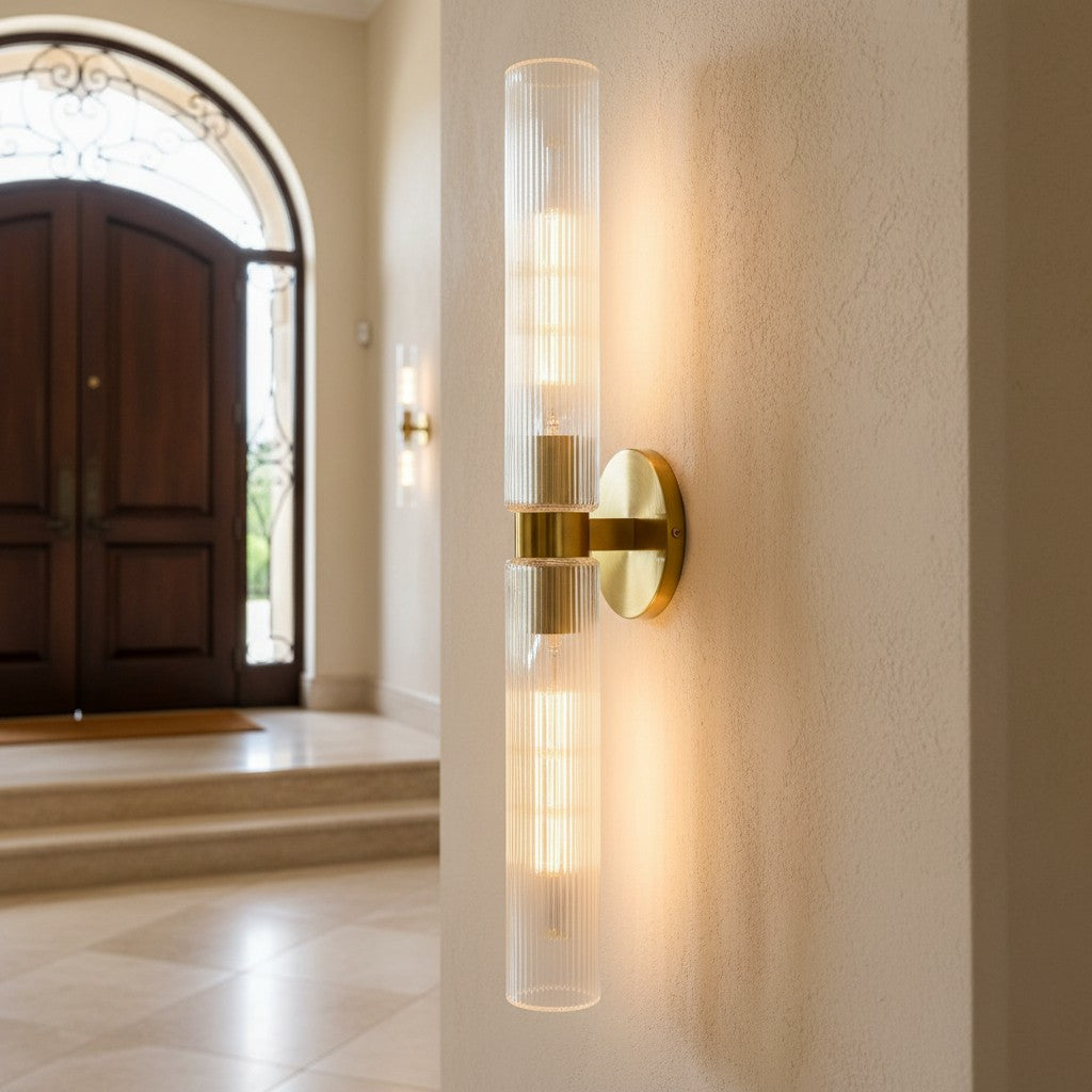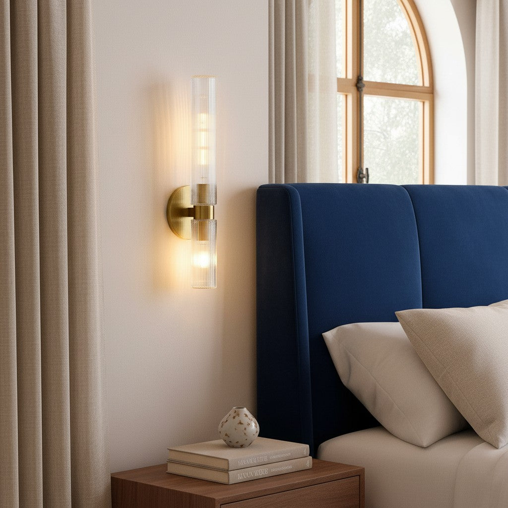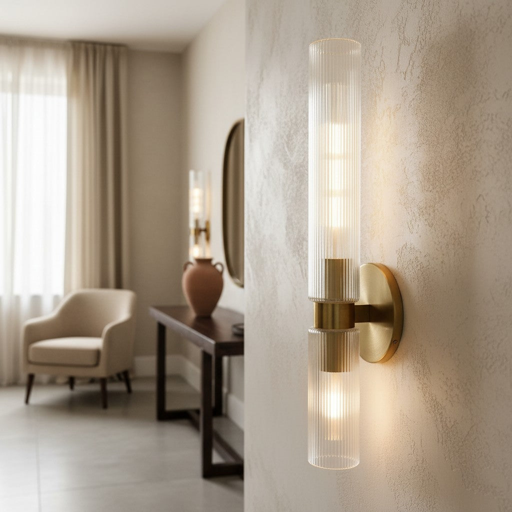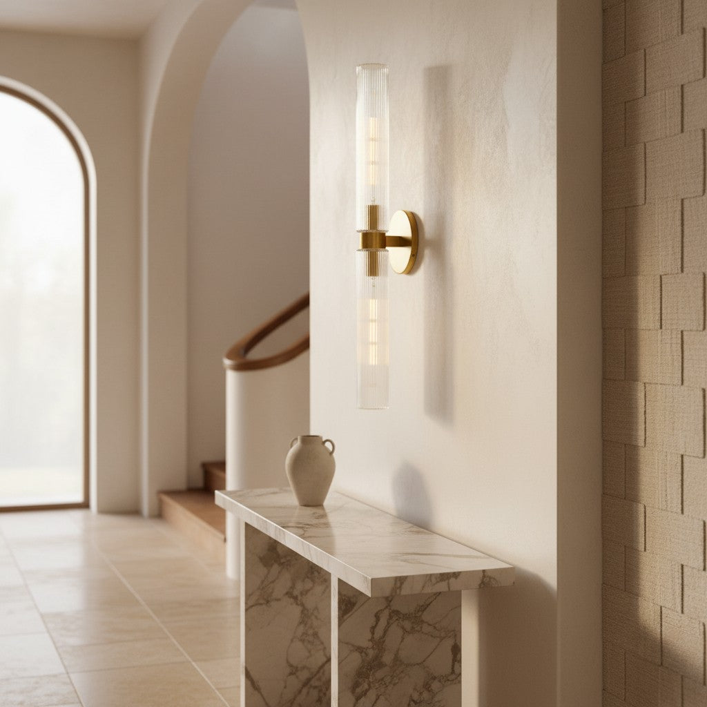 Bastian Modern Fluted Glass Double Asymmetrical Sconce