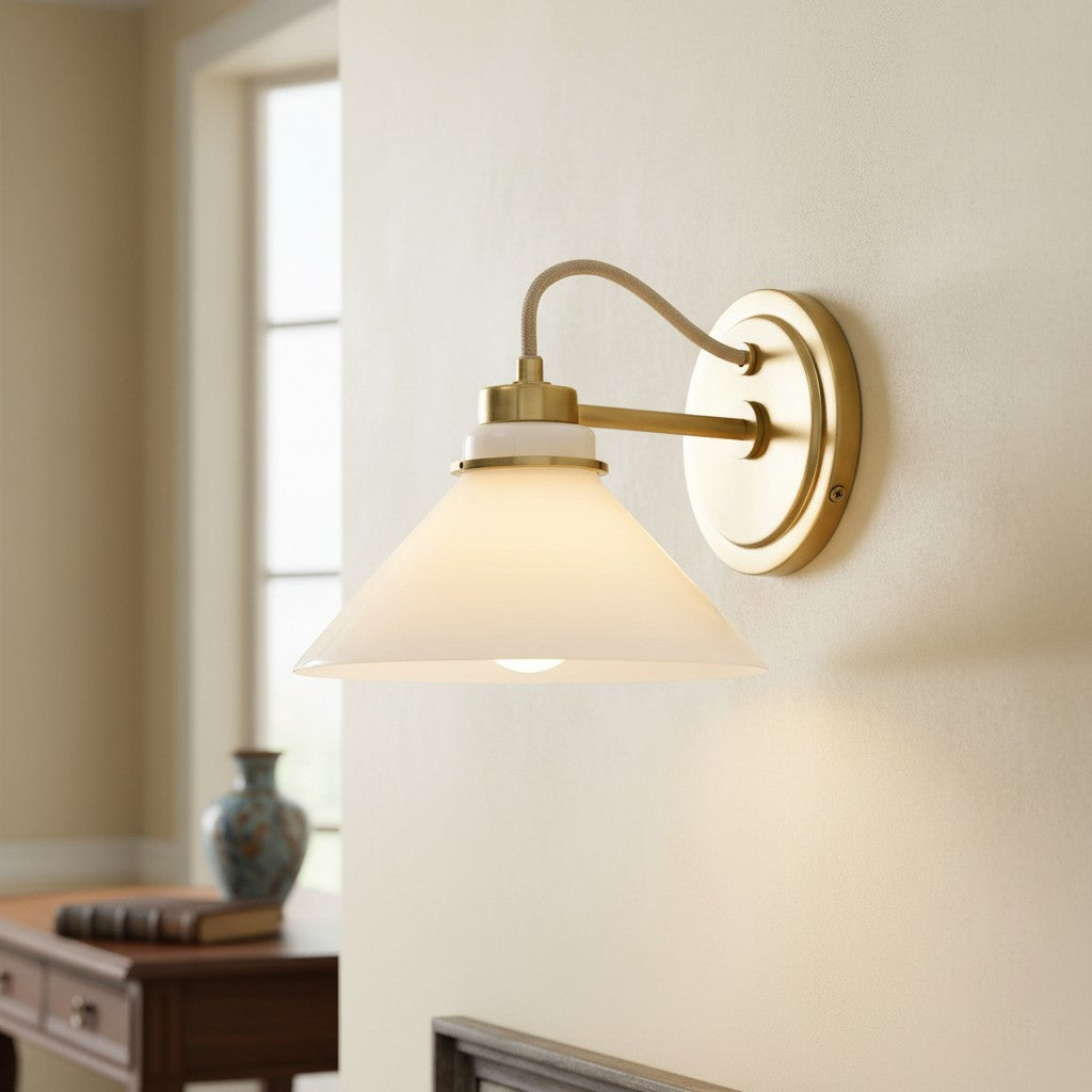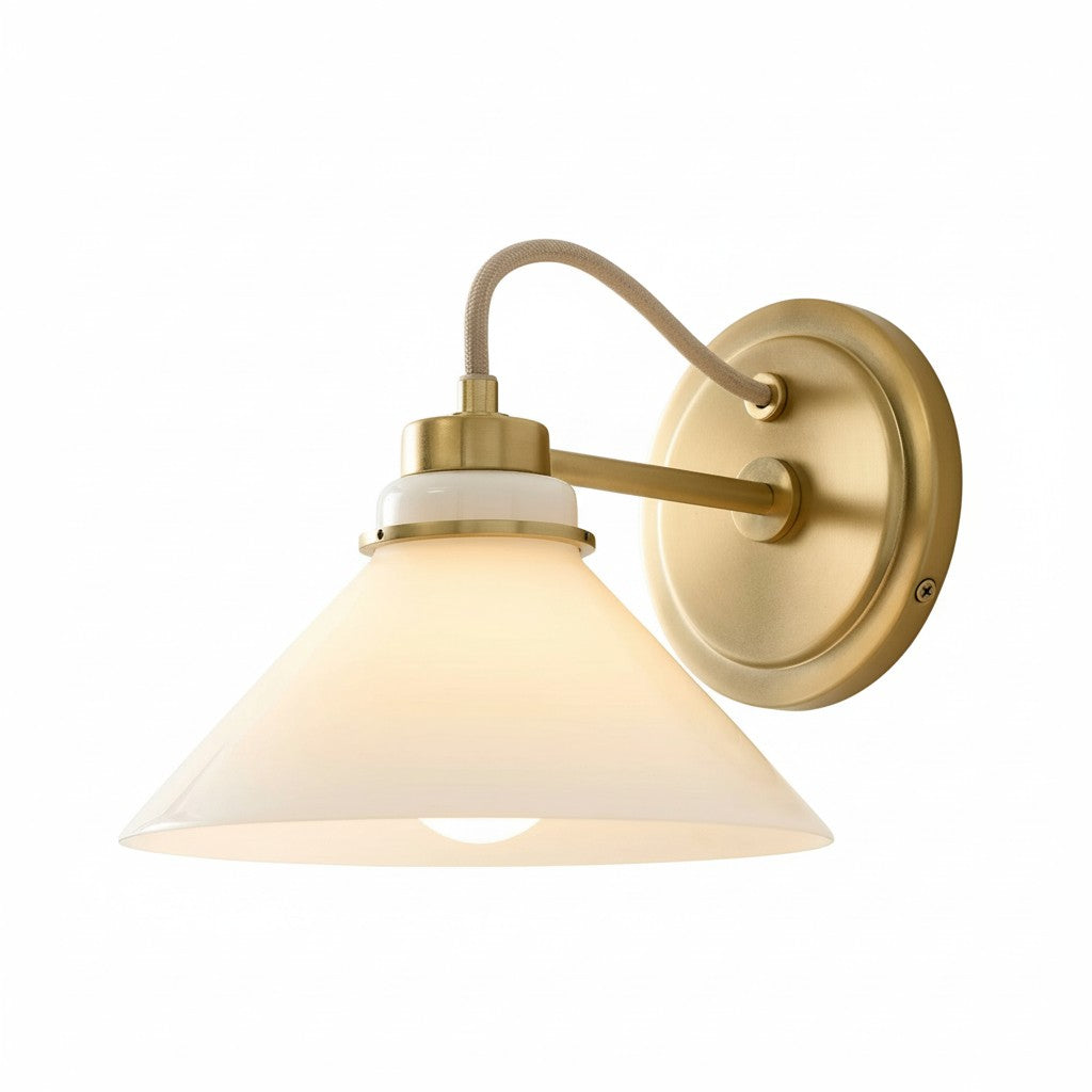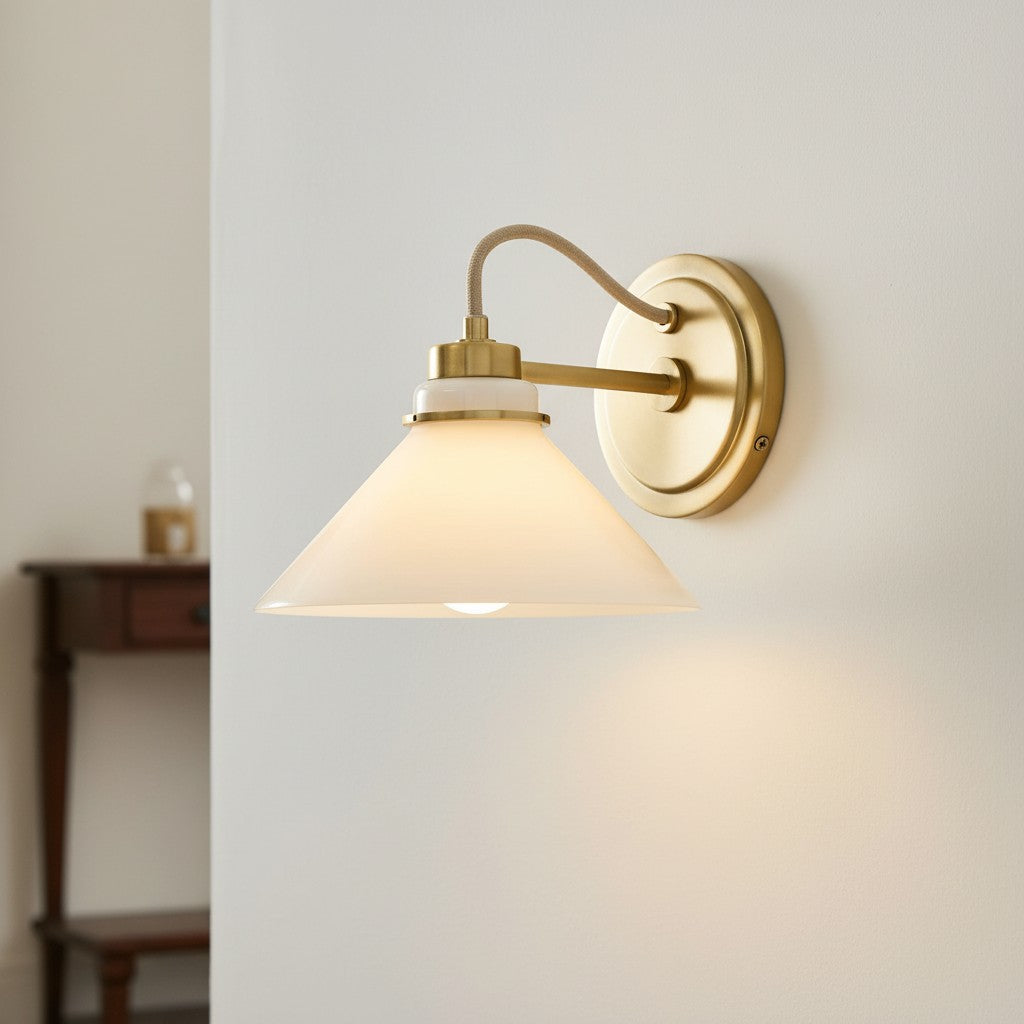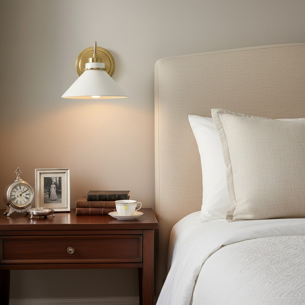 Bring vintage-inspired charm to your walls with the Brielle Wall Sconce. A flared metal shade and exposed fabric cord create a striking blend of texture and shape. Perfect for hallways, bedrooms, or reading nooks.