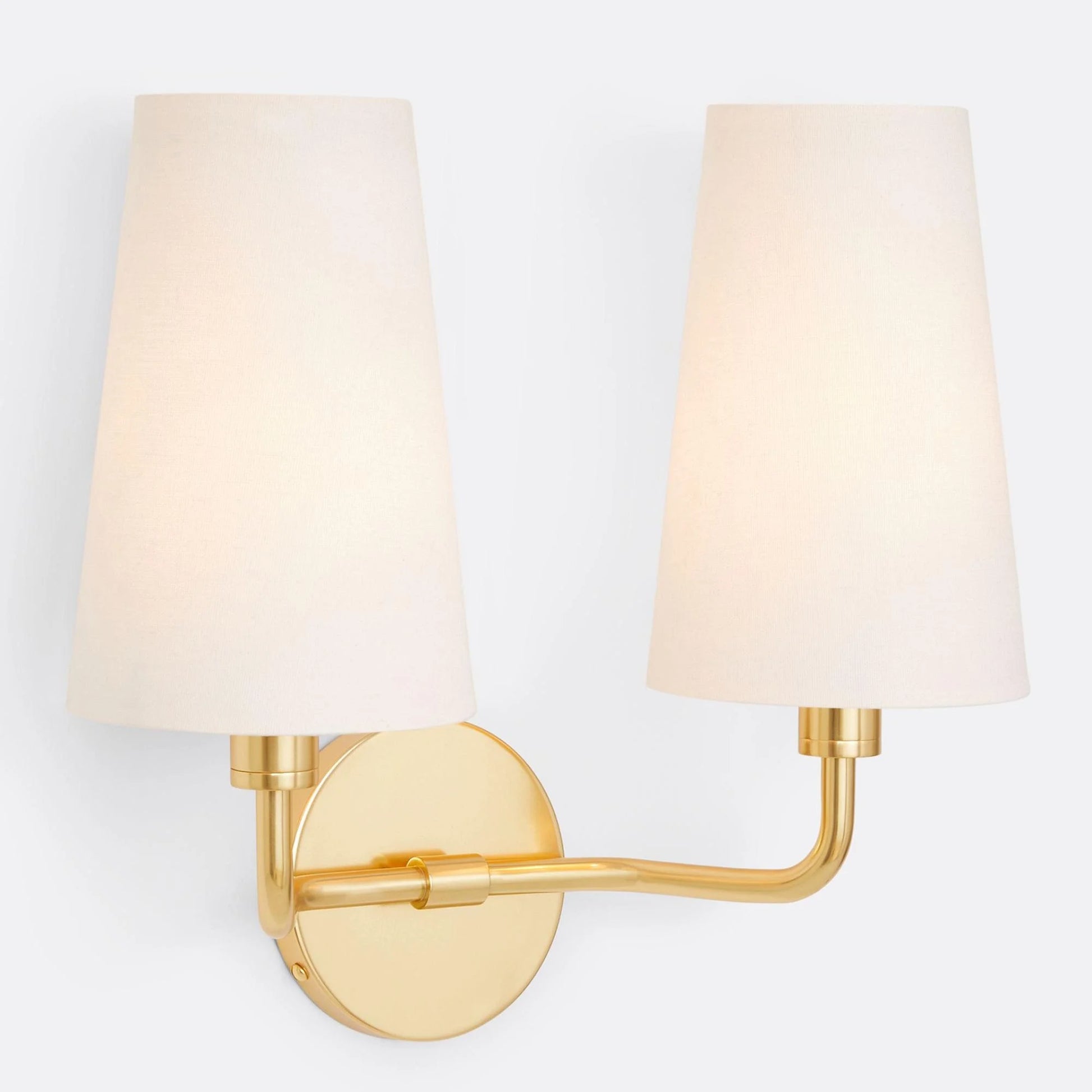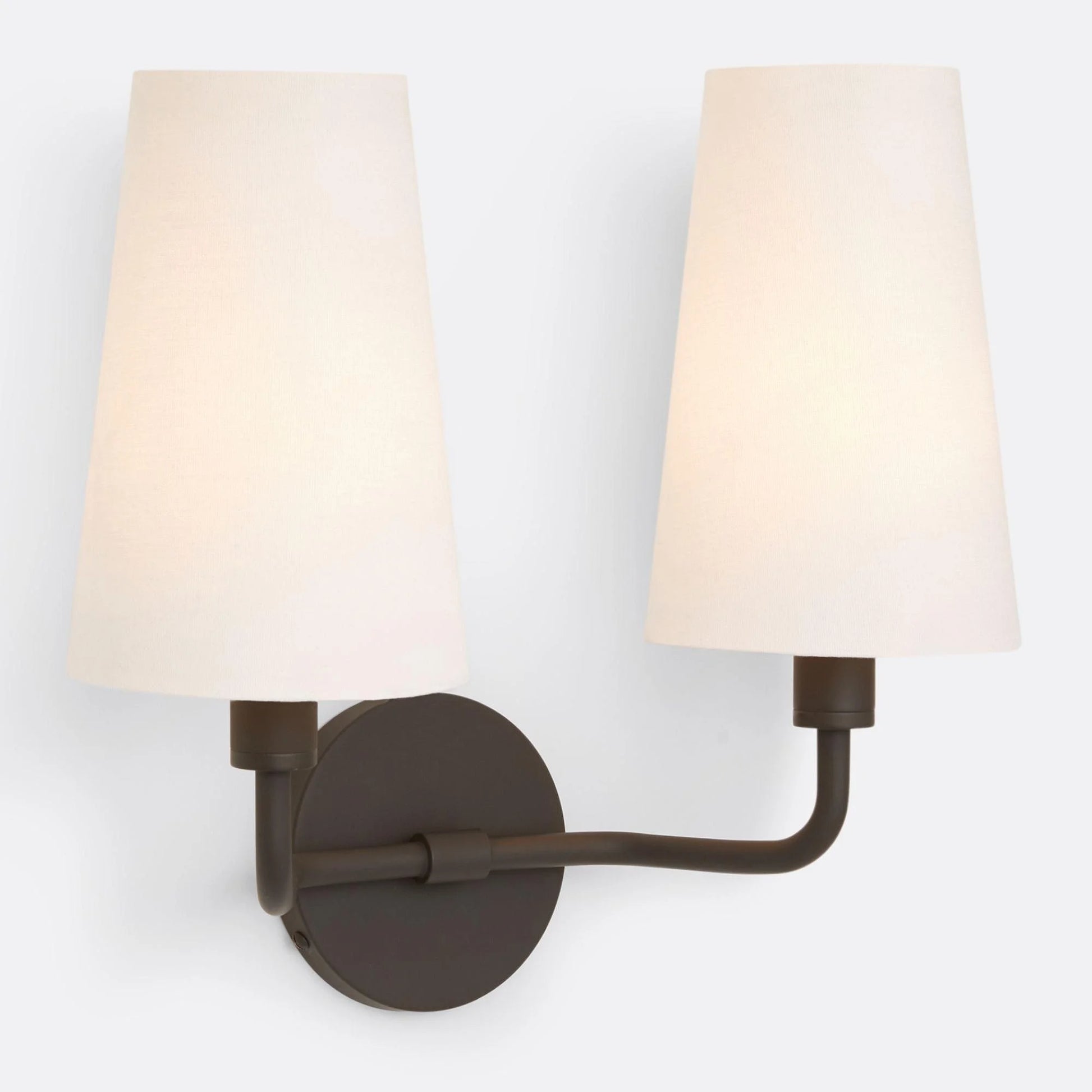 Channel mid-century charm with the Cassian Double Sconce, inspired by 1950s French Art Deco. Featuring linen shades and a refined metal frame, it brings a graceful glow to hallways, bedrooms, or entryways.