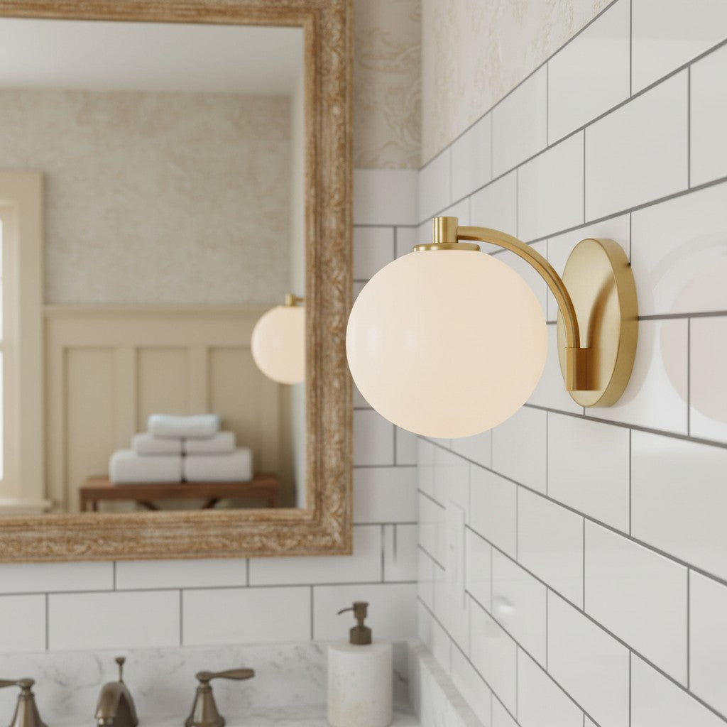 Step back in time with the Cassilda Vanity Light, a beautiful tribute to Mid Century Scandinavian design. A solid brass base and round glass shade offer soft illumination. Ideal for bathrooms, powder rooms, and dressing areas.