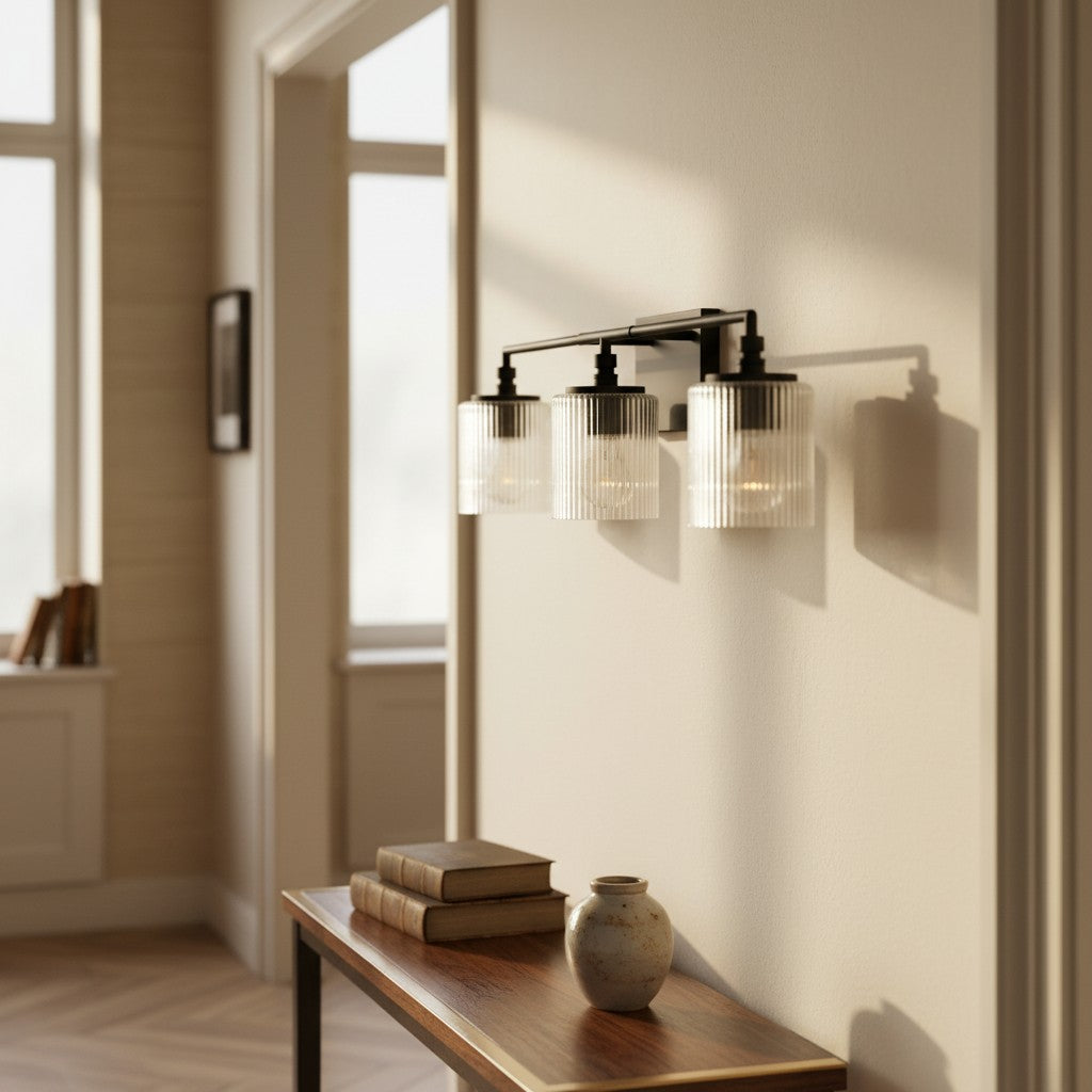 Eliot Modern 3-Light Ribbed Glass Cylinder Vanity Wall Lamp