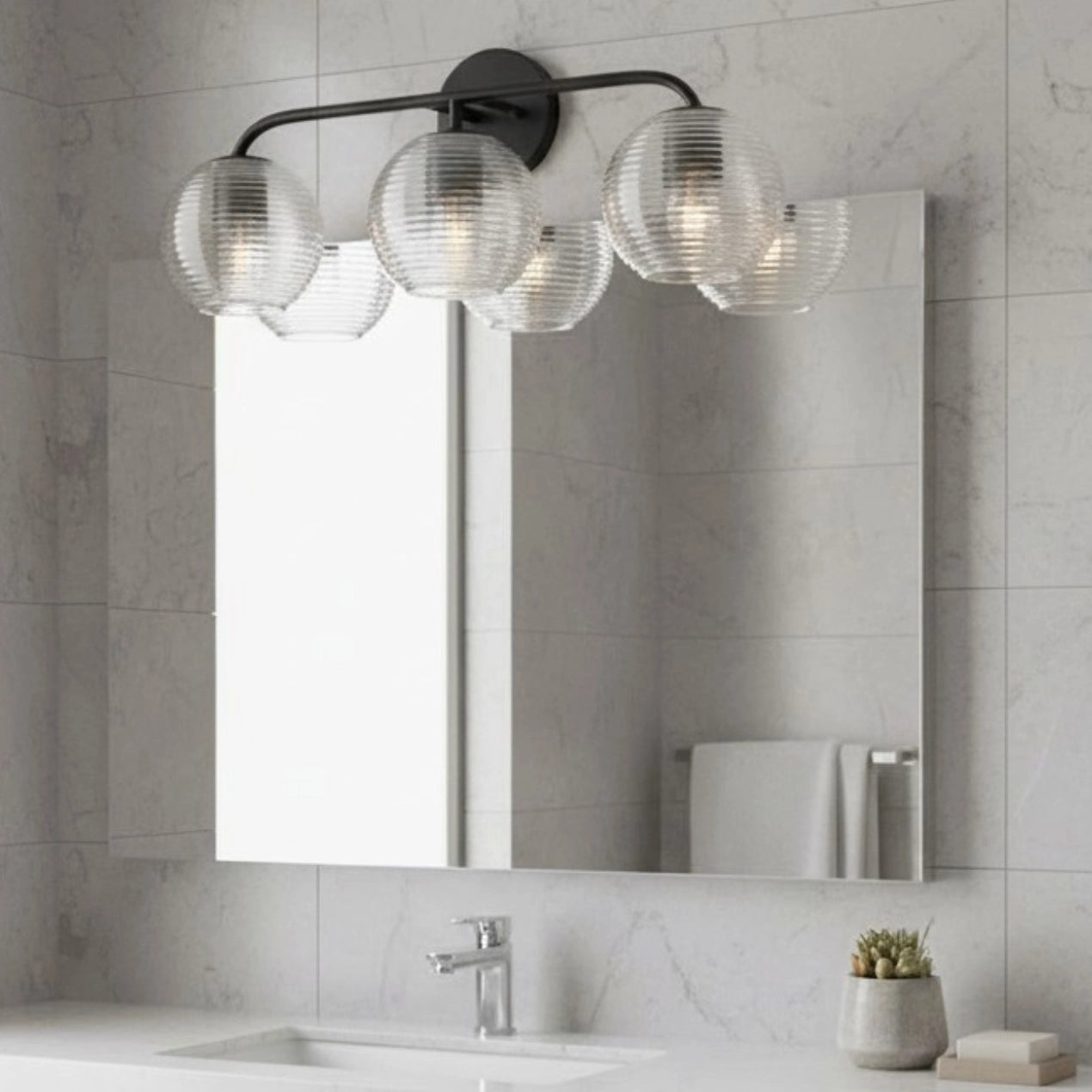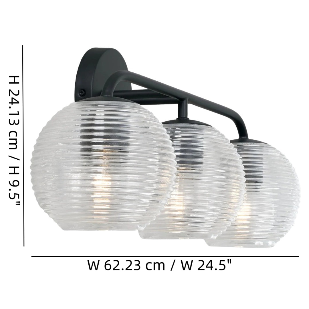 Huxley Minimalist 3-Light Ribbed Glass Wall Light