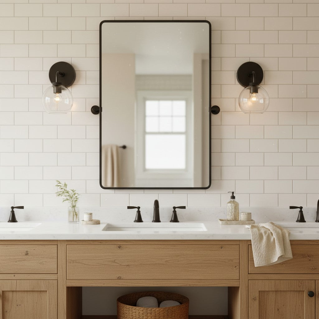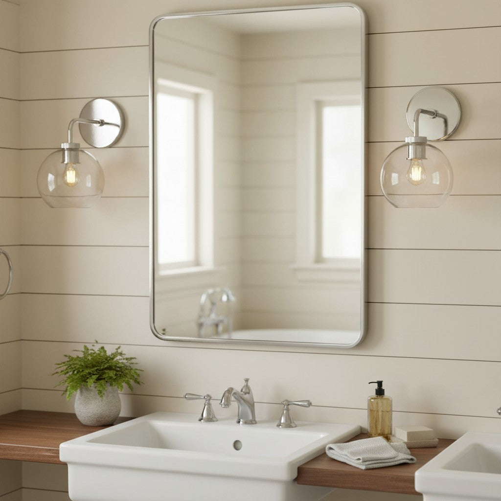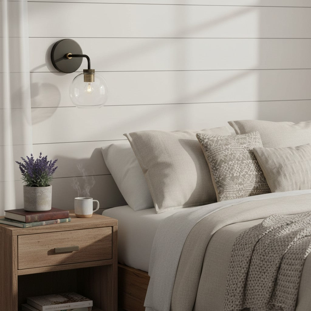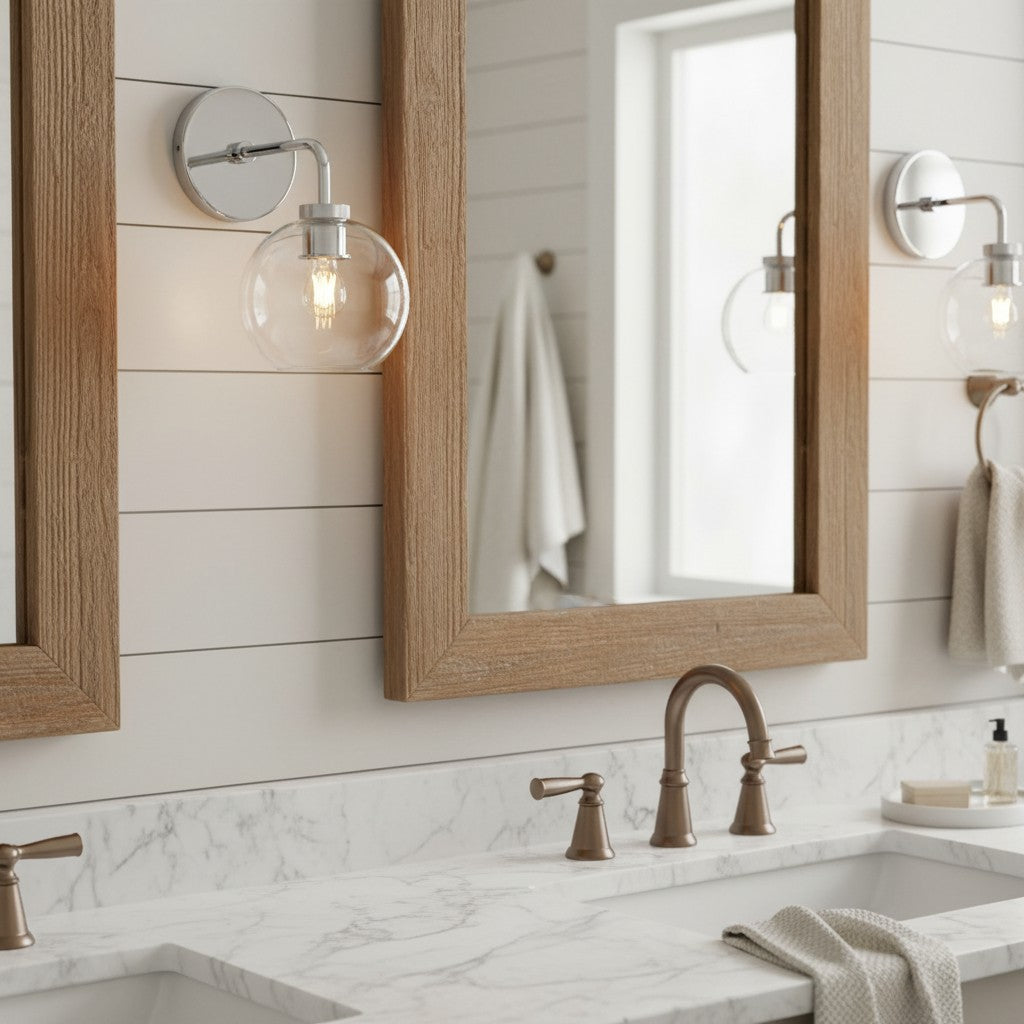 Elevate your space with this Modern Globe Glass Wall Sconce that blends sleek design with subtle industrial flair. Featuring hand-blown glass shades that offer a soft, ambient glow, it's ideal for creating a warm atmosphere.
