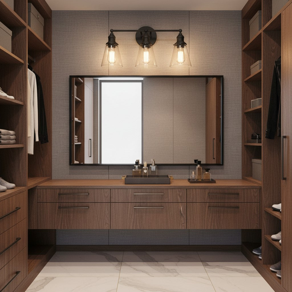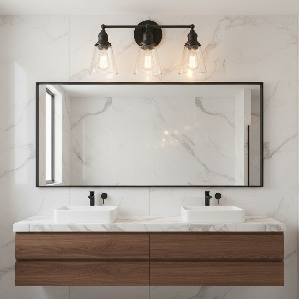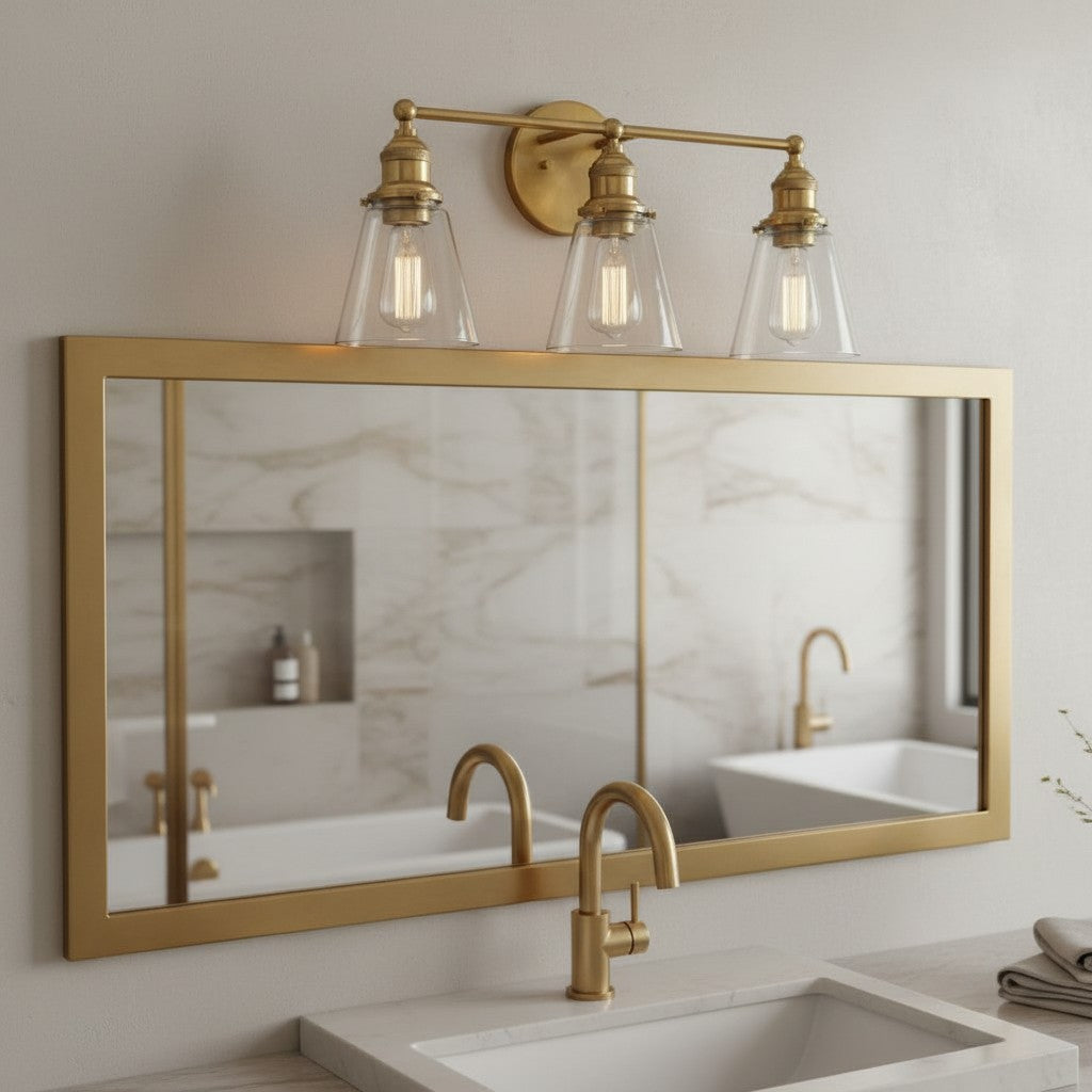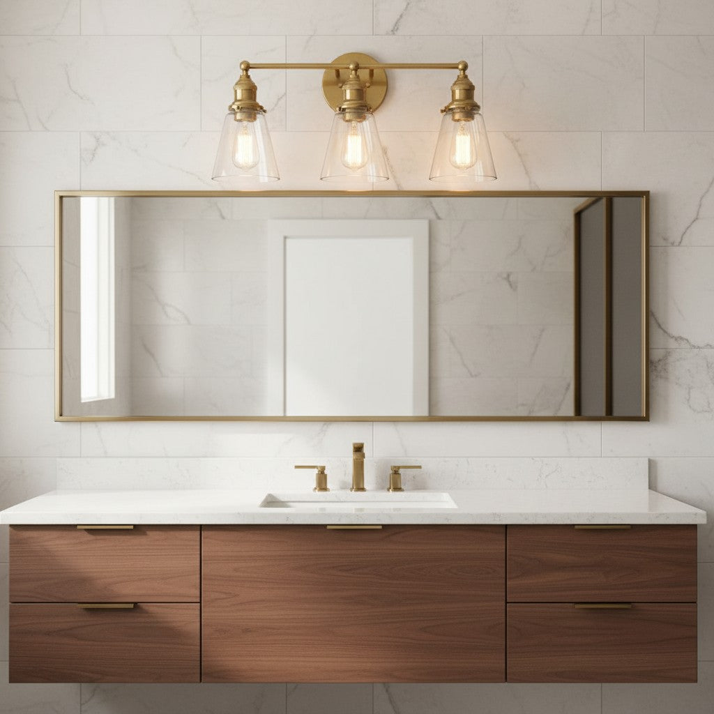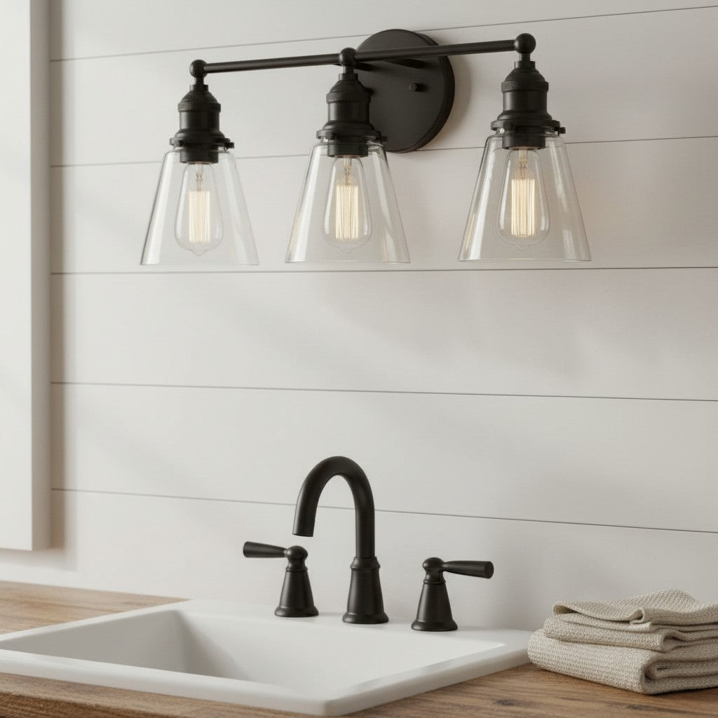 The Leah Farmhouse 3-Light Glass Vanity Sconce is a classic 3-light glass wall sconce that combines rustic warmth with practicality, emits a cozy glow, and integrates aesthetics with functionality.