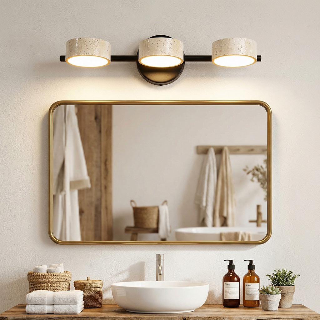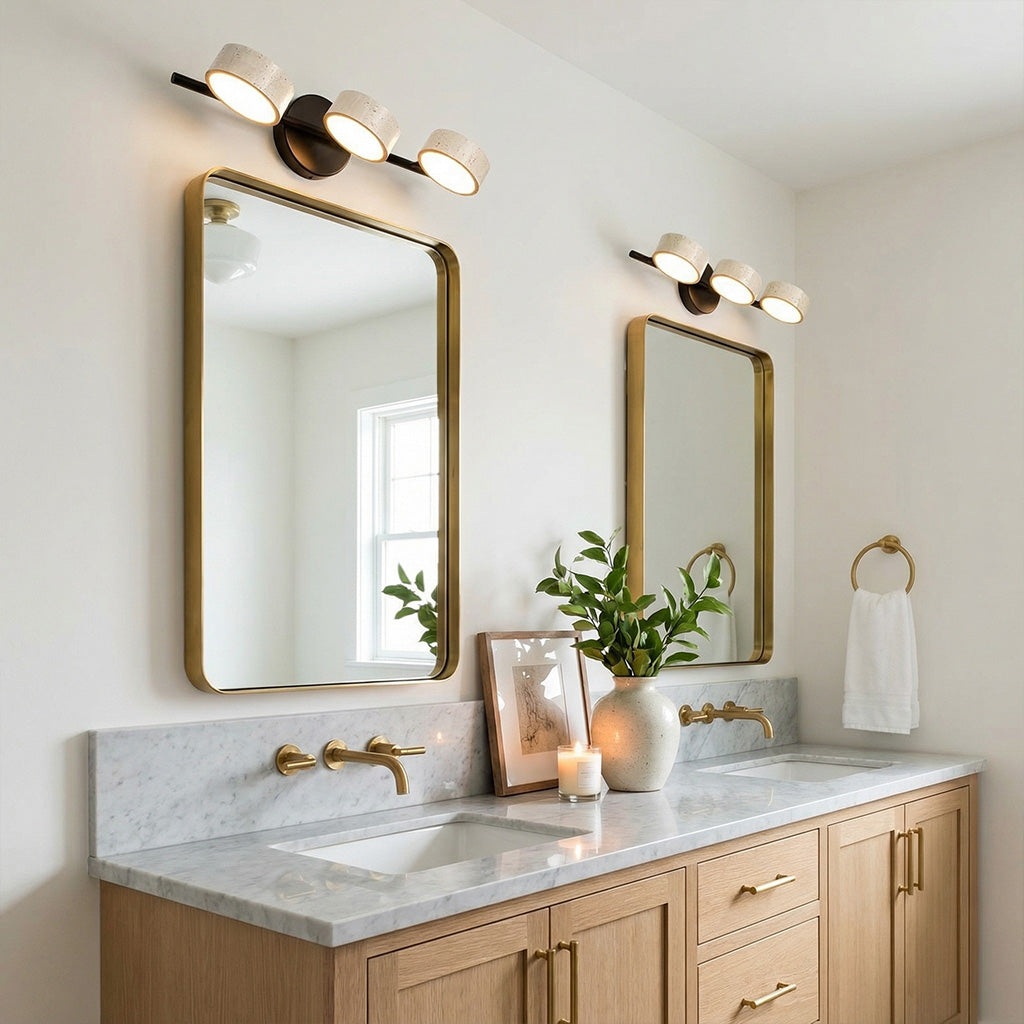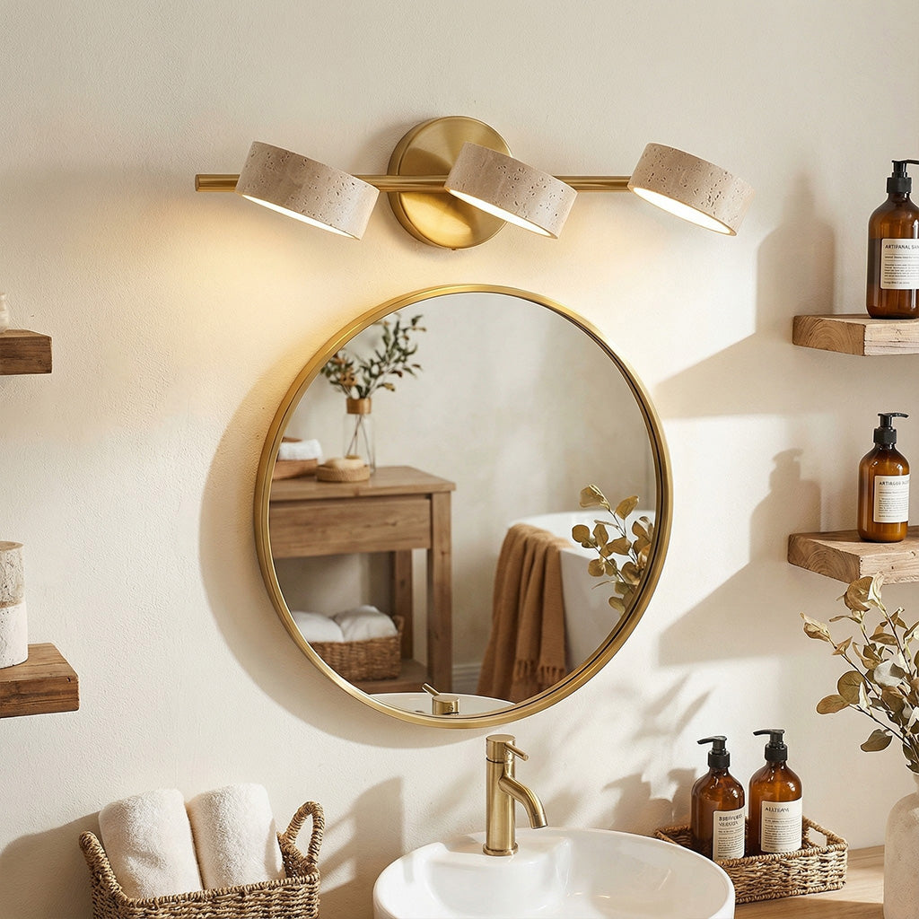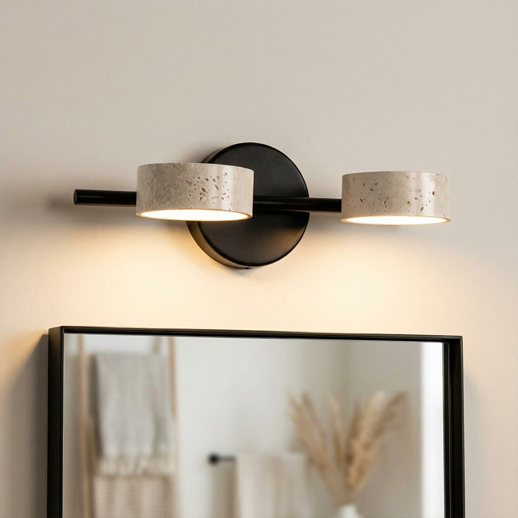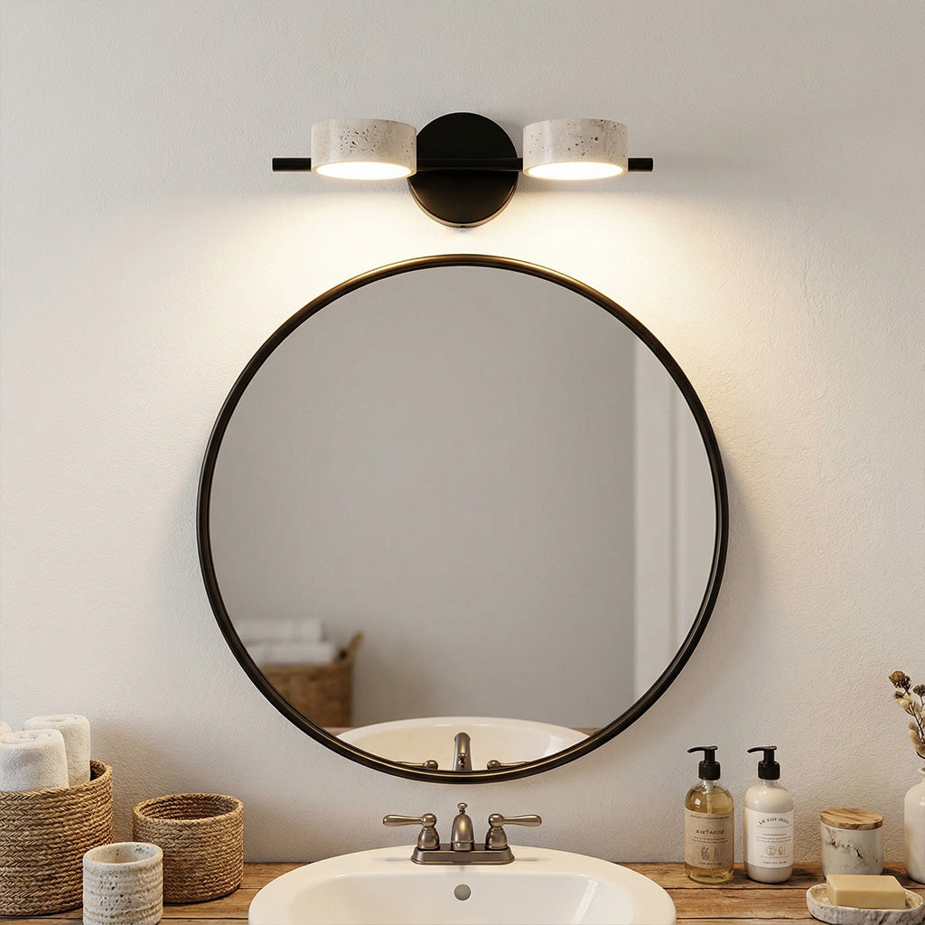 The Notus Vanity Light combines timeless stone texture with a sleek metal frame, adding warmth and artistry to your space. Ideal for bathrooms, powder rooms, and modern dressing areas.