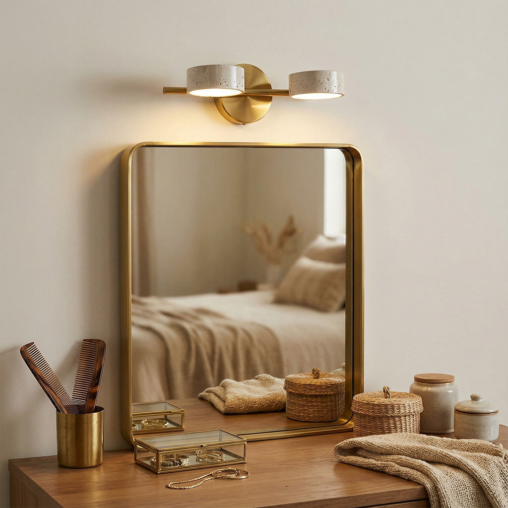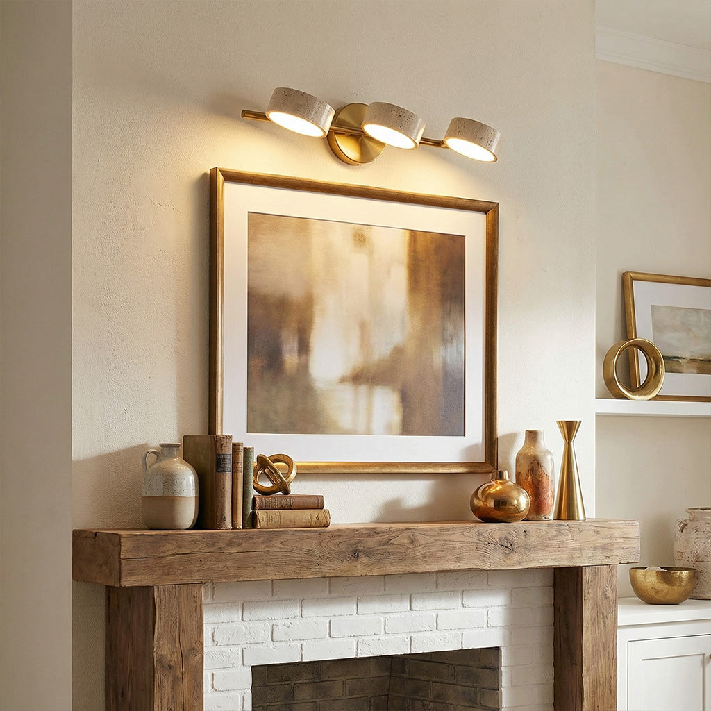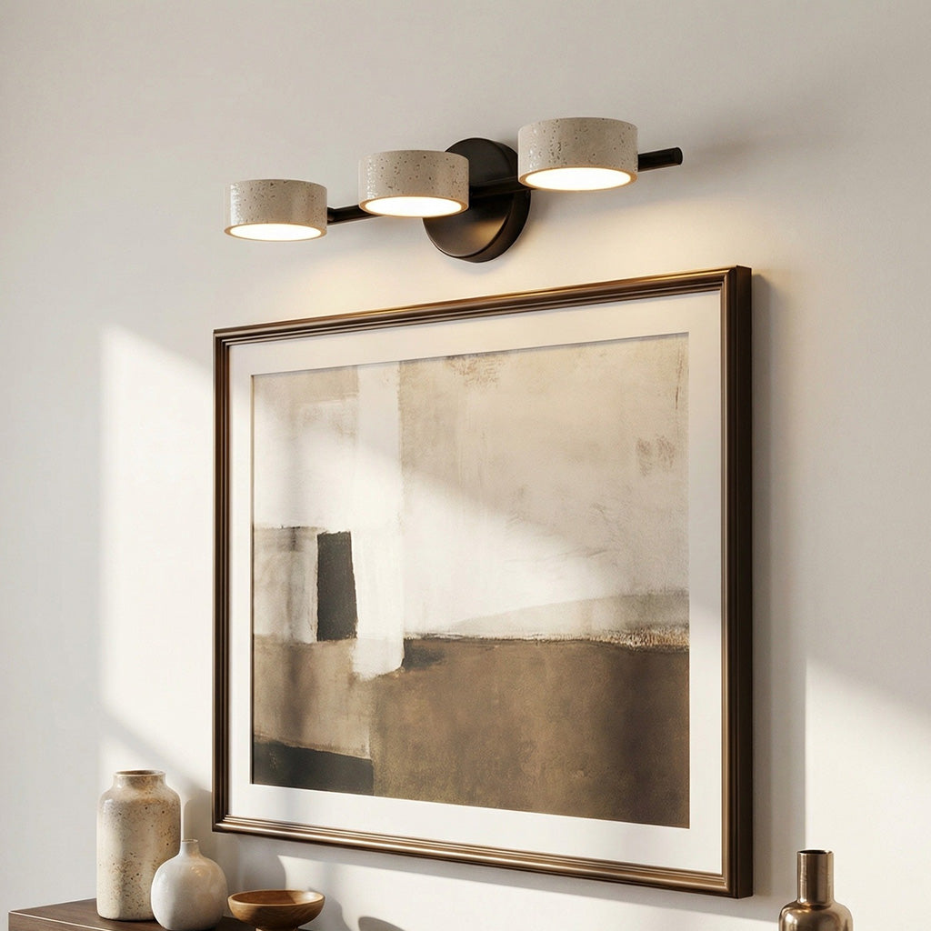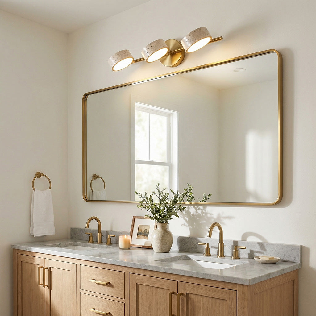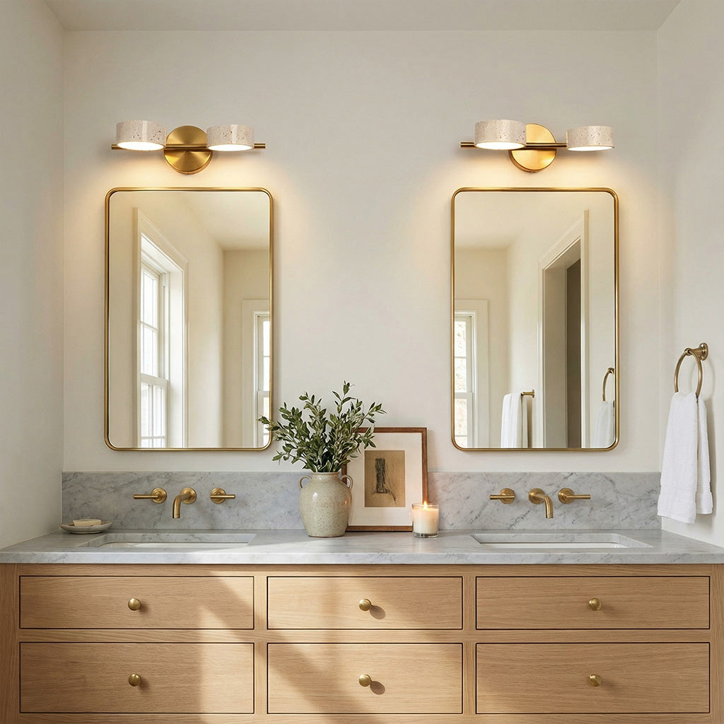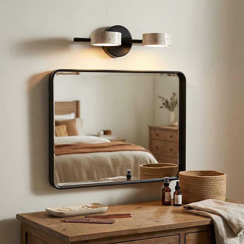 The Notus Vanity Light combines timeless stone texture with a sleek metal frame, adding warmth and artistry to your space. Ideal for bathrooms, powder rooms, and modern dressing areas.