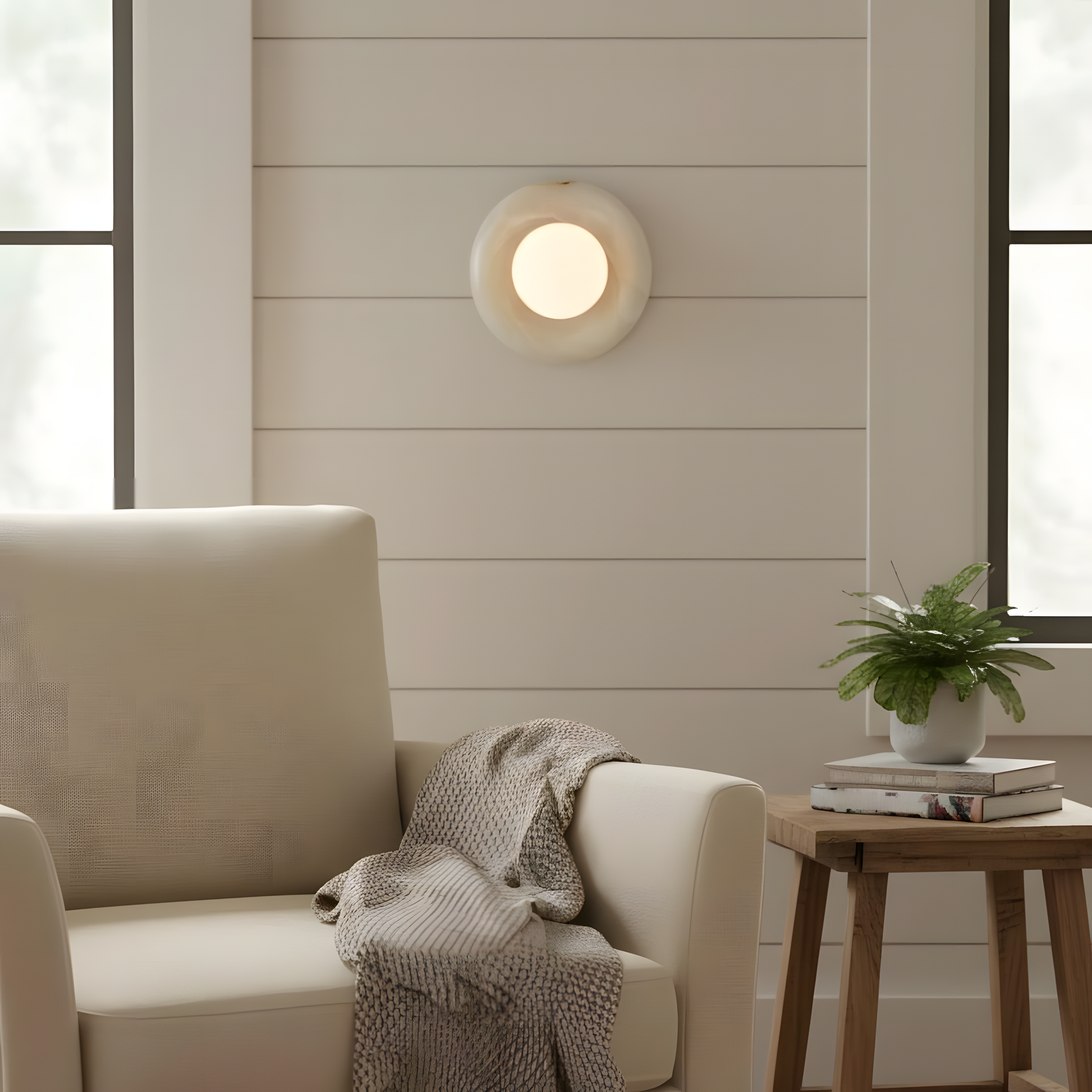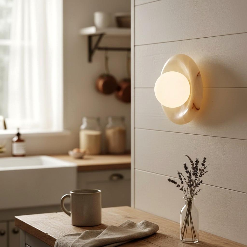 Rhea Modern Natural Gravure Onyx Glass Globe Wall Sconce