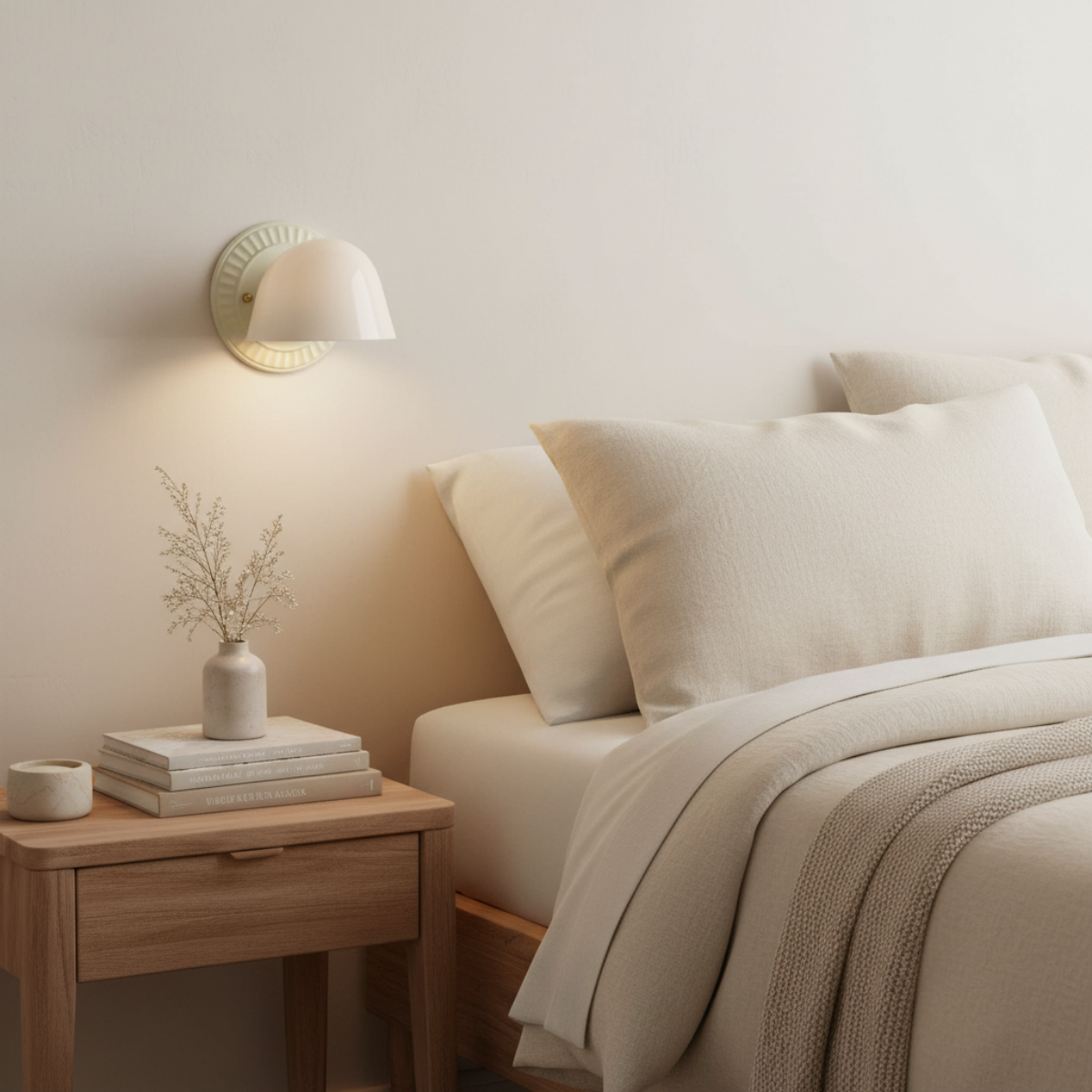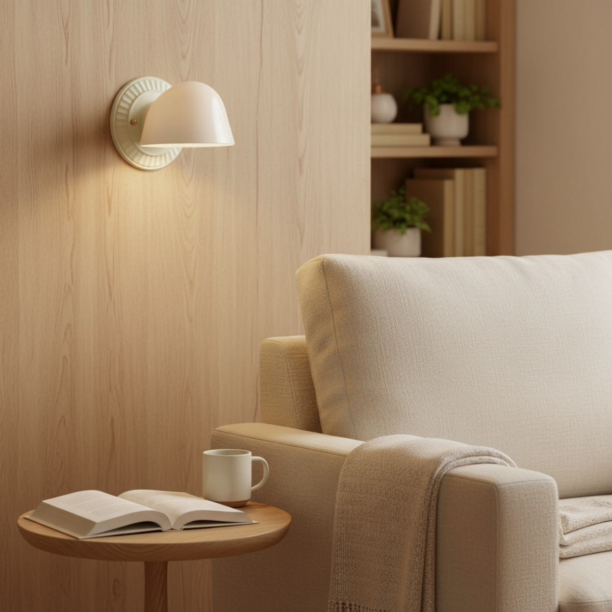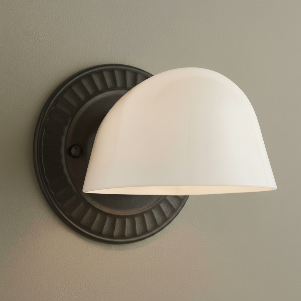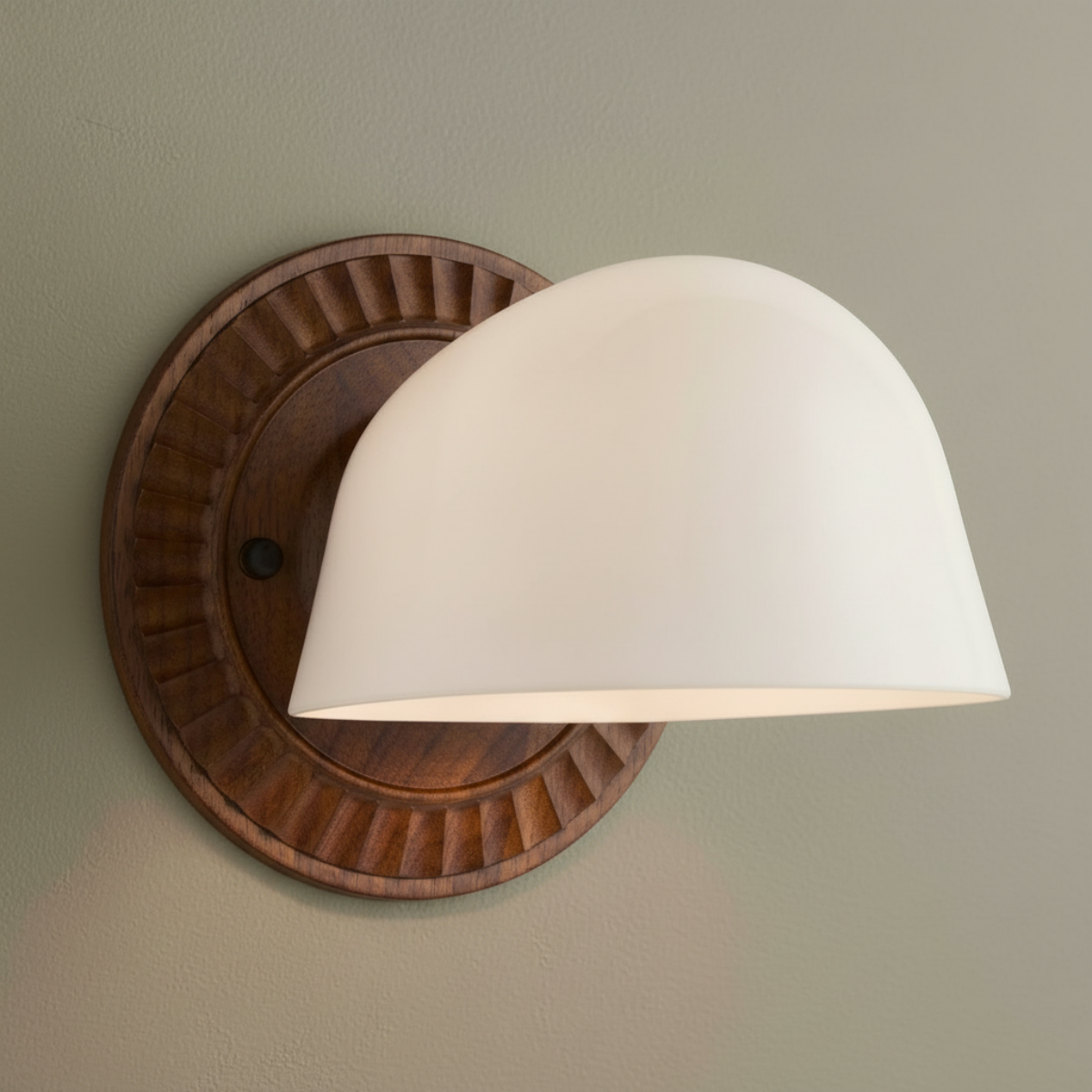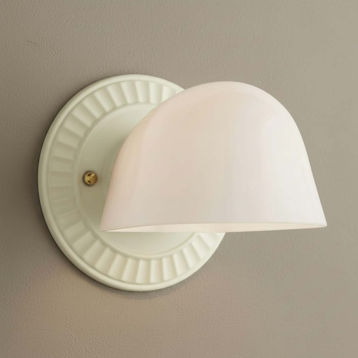 Bringing modern twist to mid-century artistry, the Thais Wall Sconce draws inspiration from 1920s Art Deco porcelain fixtures to embody timeless classic aesthetics while casting warm, inviting illumination. The curved milk-white glass shade pairs perfectly with a fluted fixture, making the wall lamp a ideal lighting choice for living rooms, hallways, bedrooms, and bathrooms .