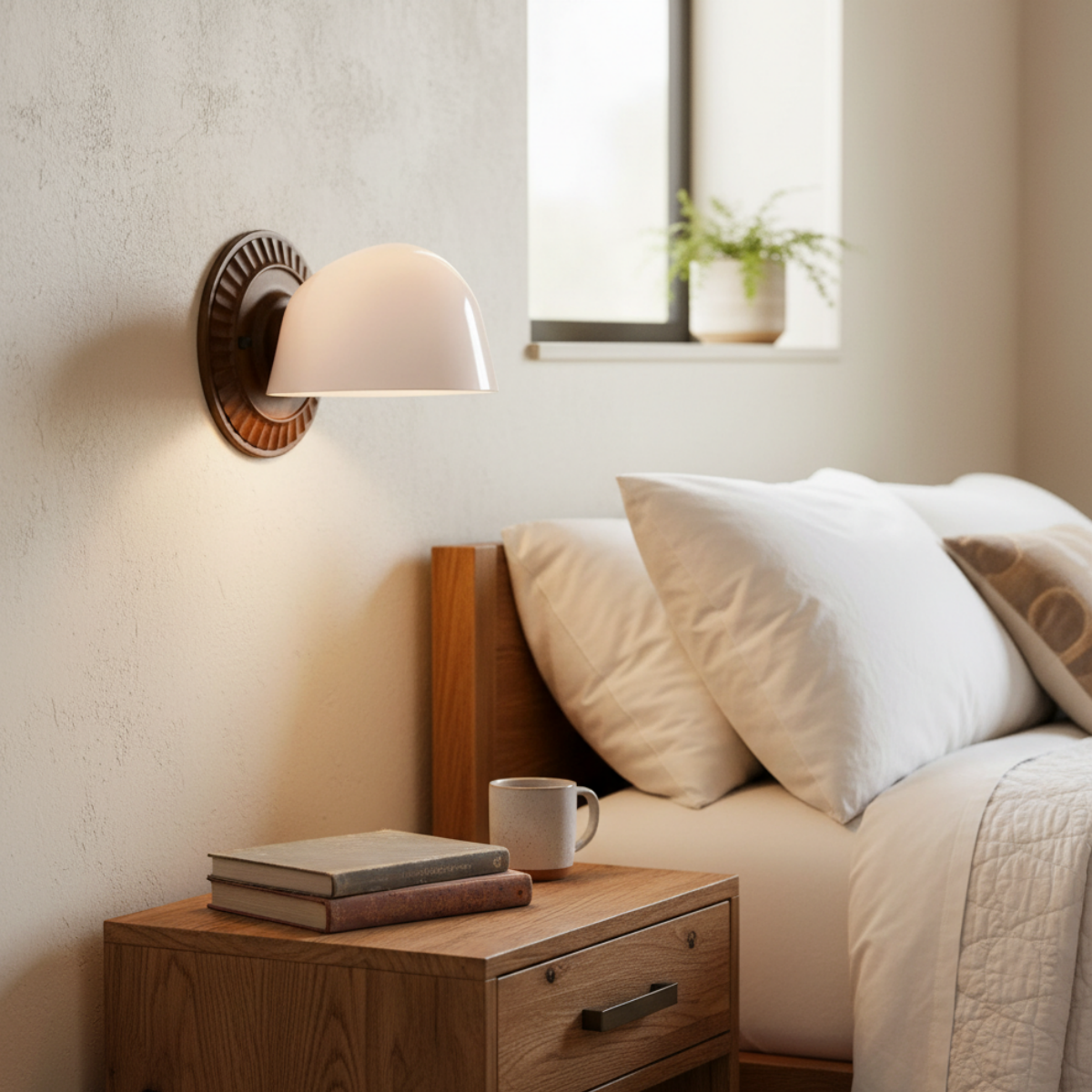 With a classic wood or ceremic base available in multiple finishes, this wall lamp seamlessly complements with all stylings, whether it's scandinavian or vintage.