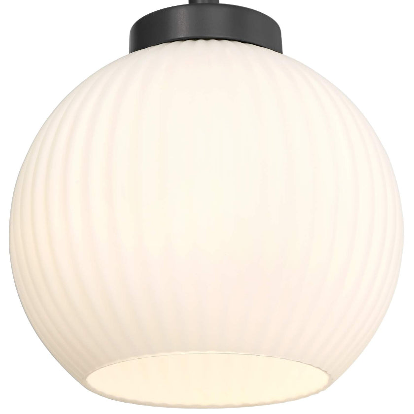 The minimalist milk ribbed glass shade provides the perfect diffused lighting and complements the overall aesthetic.