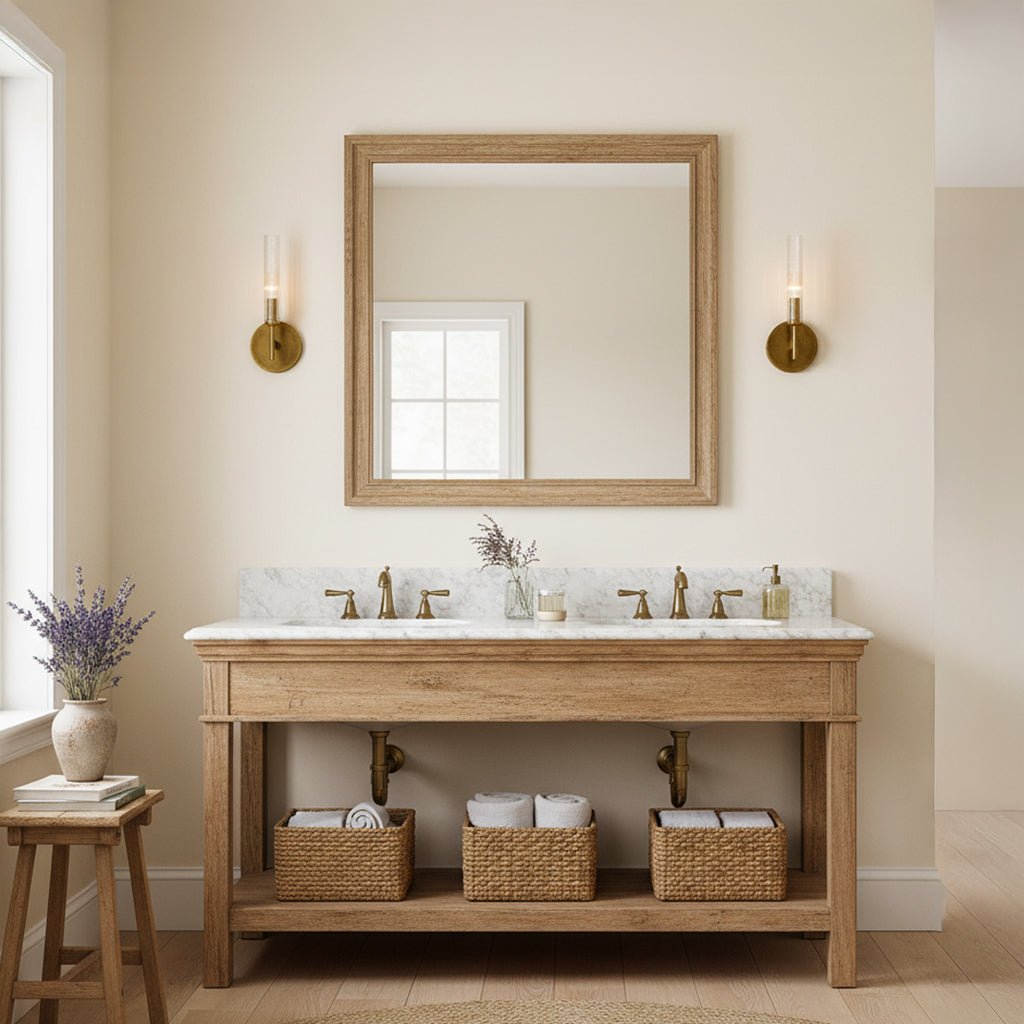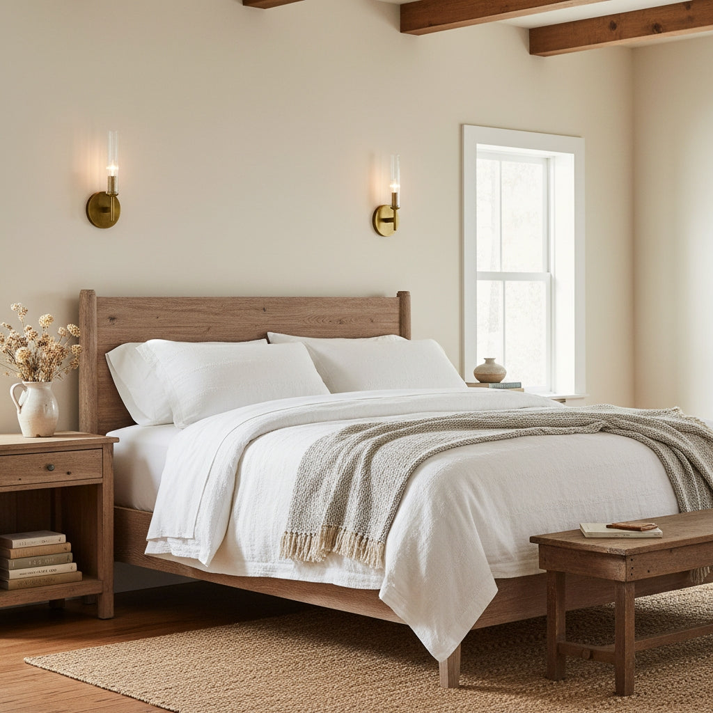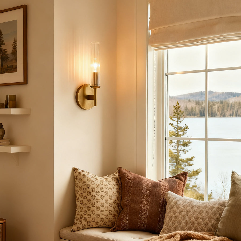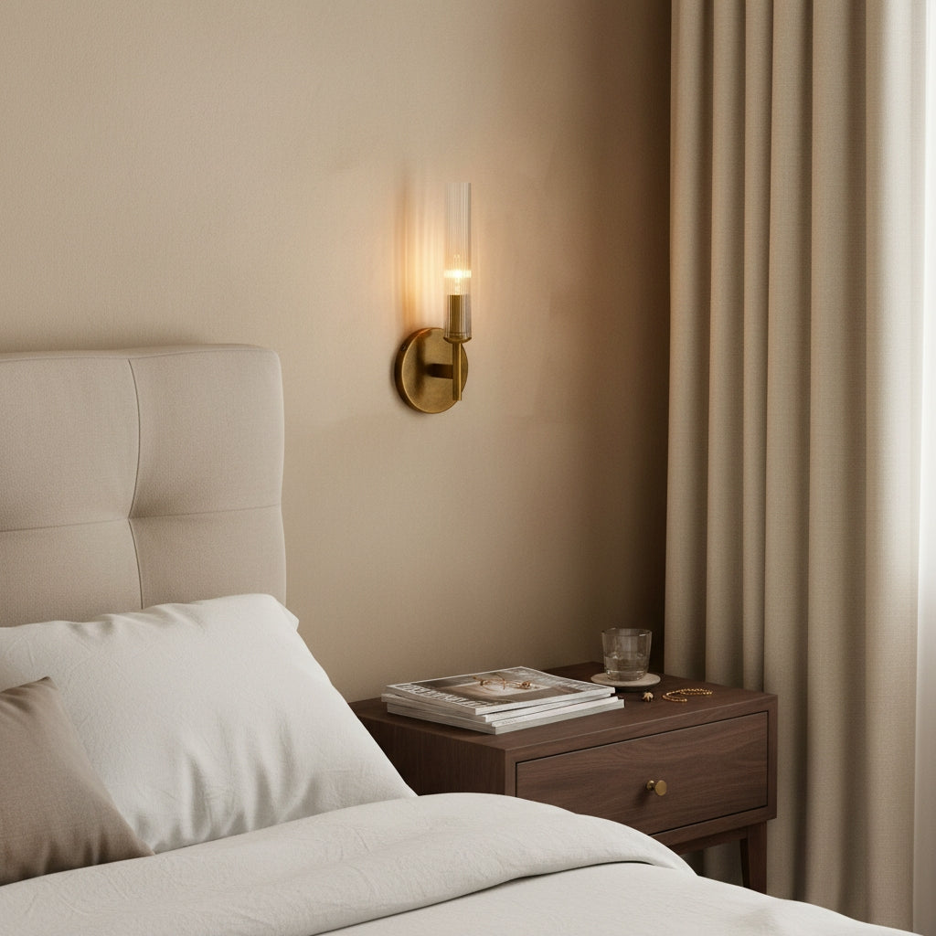 The Vireo Tube Sconce combines rustic charm with modern versatility. Featuring ribbed glass and a copper-accented frame, it brings warm, elegant illumination to any space. Perfect for bathrooms, hallways, or bedrooms.