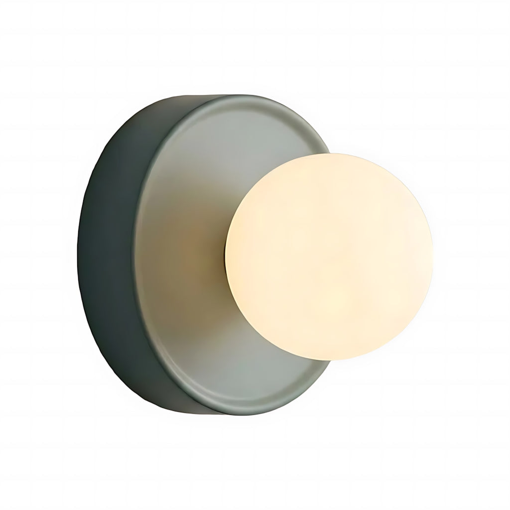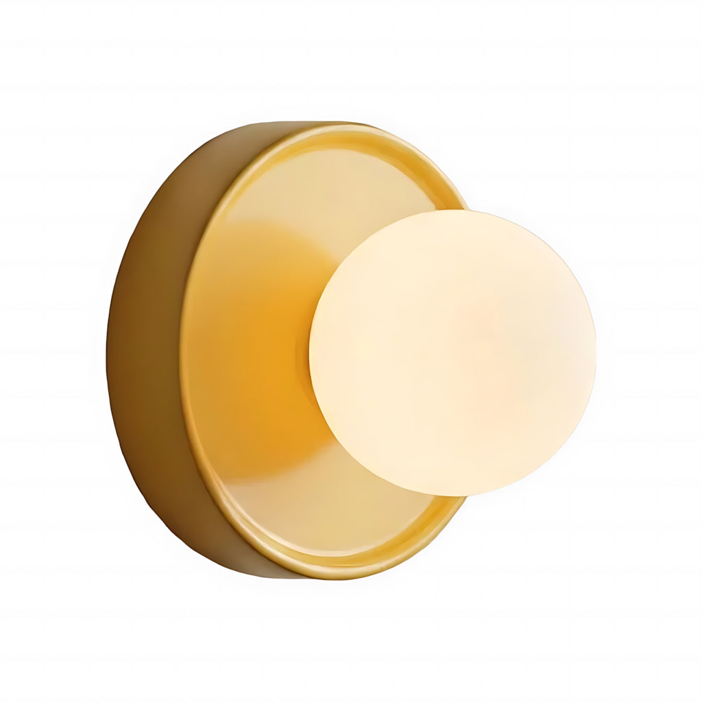 This wall lamp uses matte opal glass with a colorful ceramic base. The simple shape yet the overall vitality brings the popular spirit of the 1970s into modern interior design. It is suitable for spaces such as hallways and bedrooms.