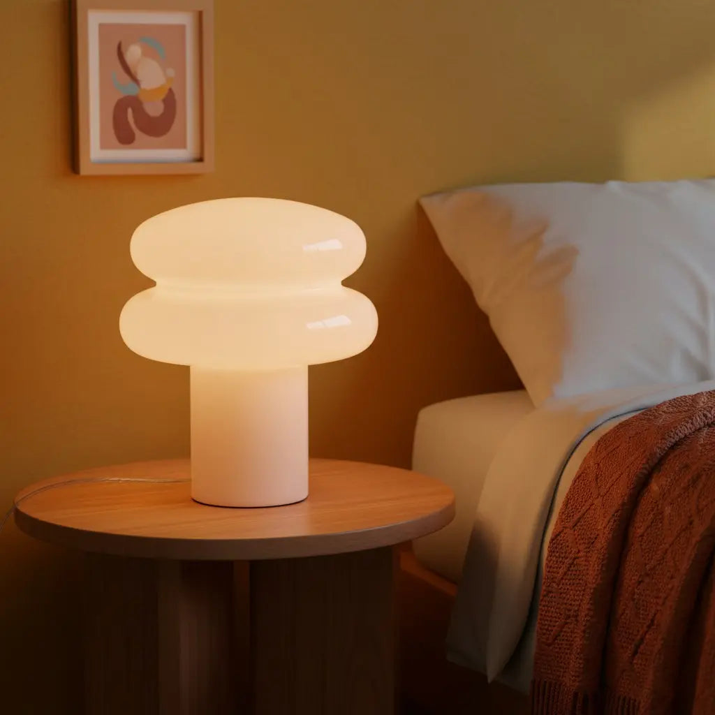 Rynvel Bauhaus Pilz-Tischleuchte aus Opalglas | LuciaLiving – Lucia Living
