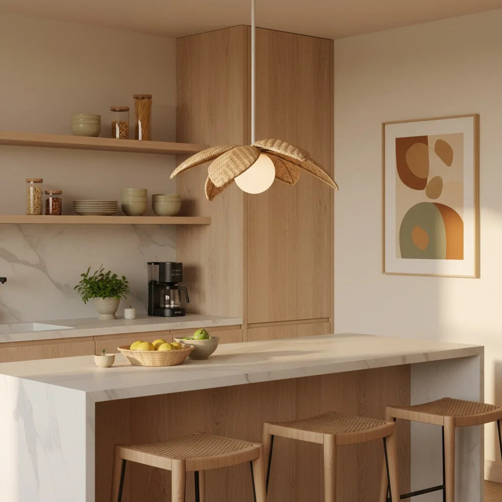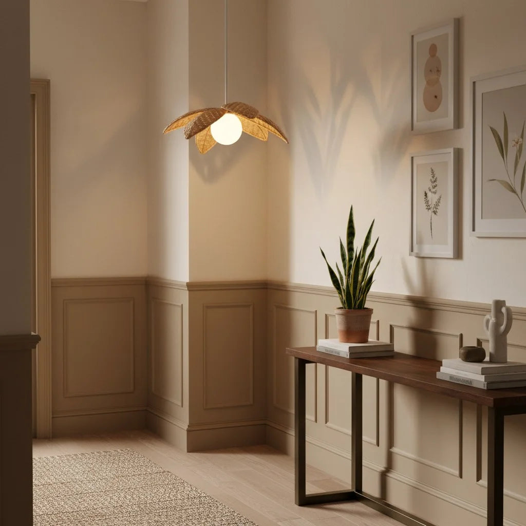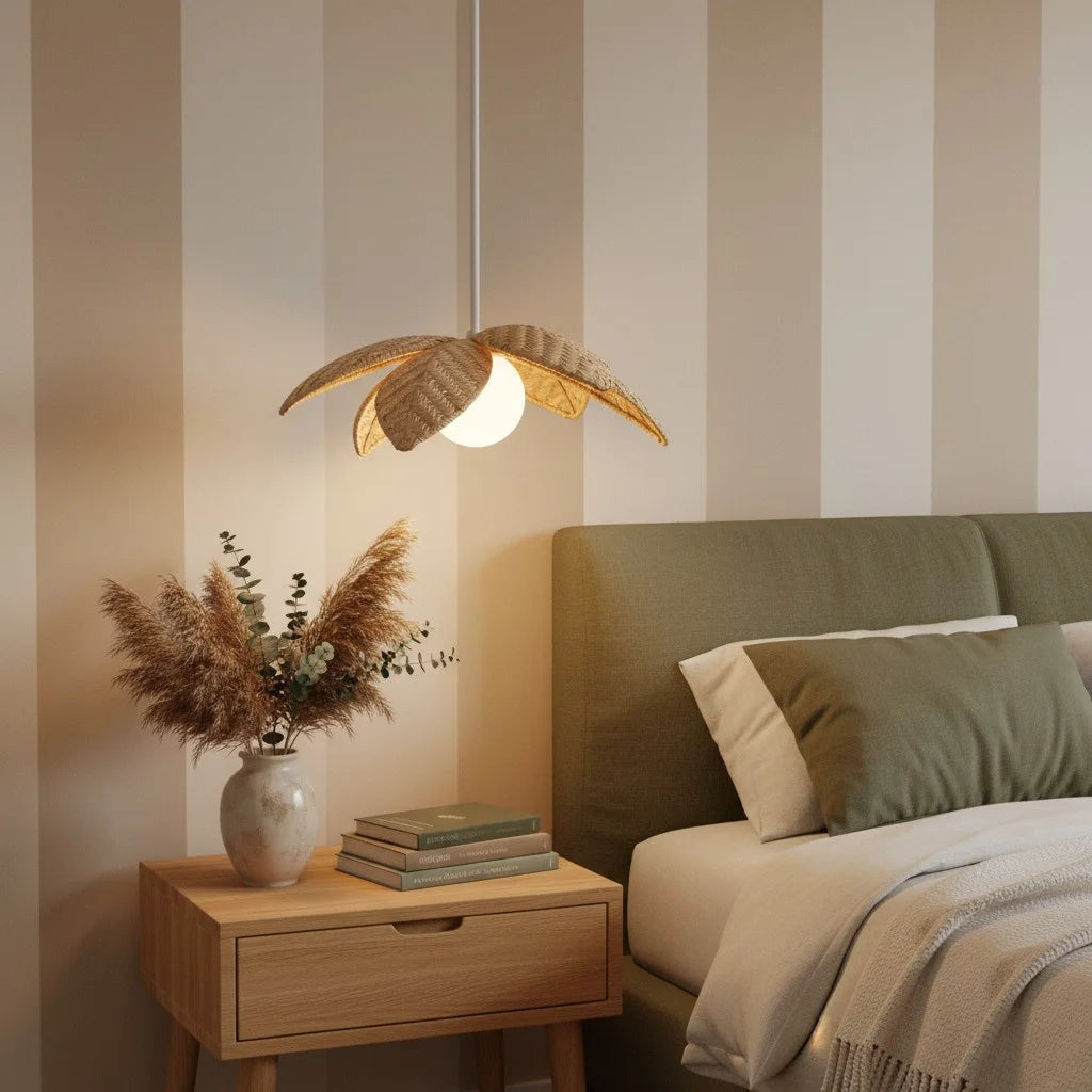 L'abat-jour en rotin tressé en forme de feuille ajoute une texture naturelle et un charme organique, se mariant parfaitement avec un décor bohème ou minimaliste.