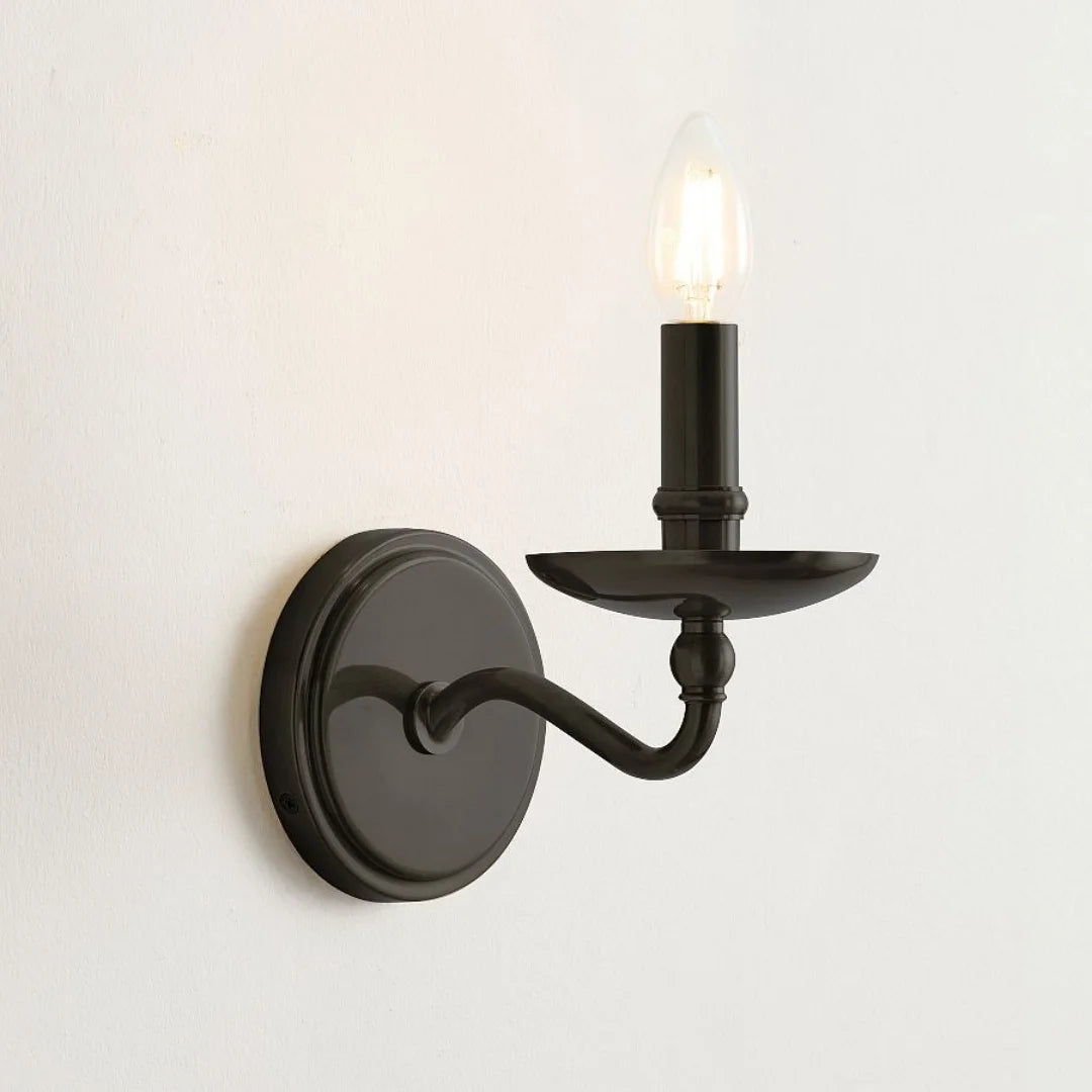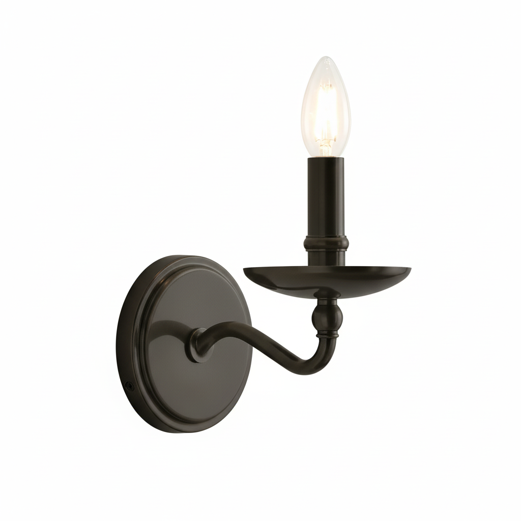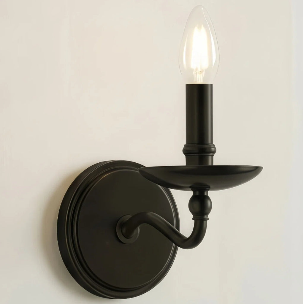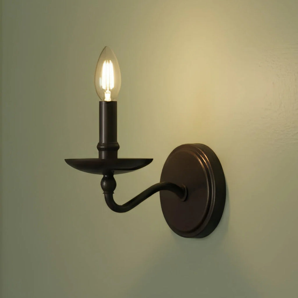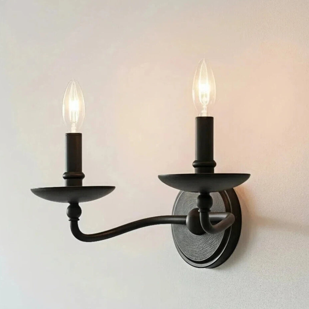 L'applique murale Aporia associe des bras classiques de style bougie à une élégante structure métallique pour un style intemporel. Disponible en version simple ou double ampoule, elle est idéale pour les salles de bains, les couloirs ou les espaces extérieurs couverts.