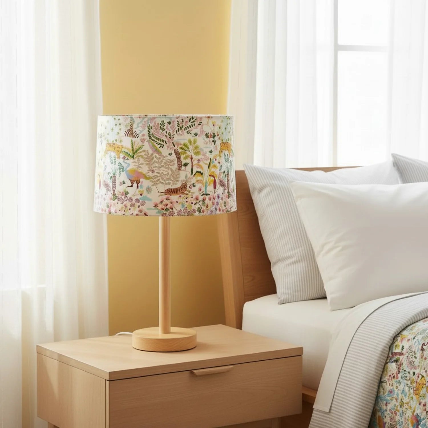 This stylish printed drum lampshade is perfect as a table lamp for the living room, bedroom, or reading nook. Whether the interior design is modern, eclectic, or retro, it can inject a unique personality and decorative charm into it.