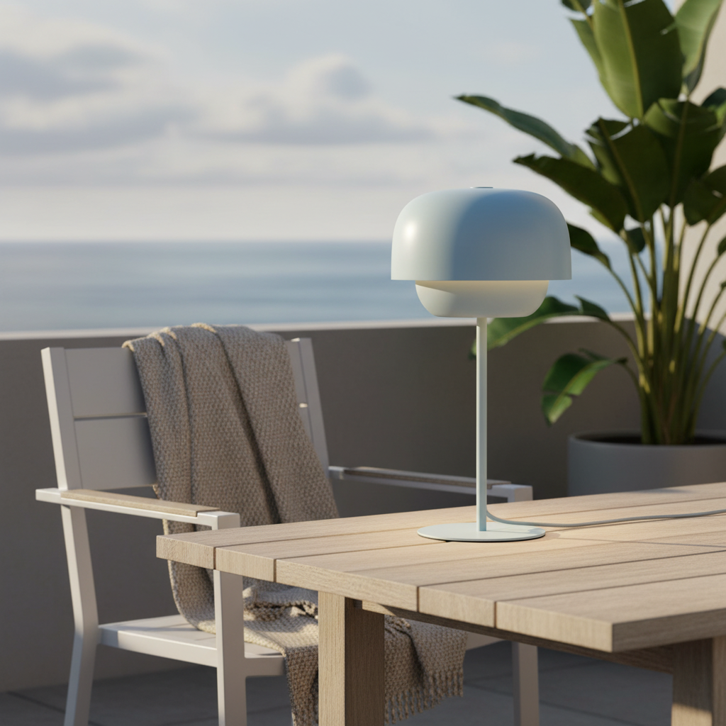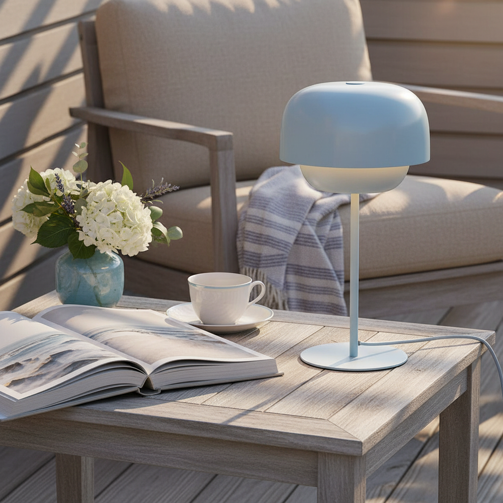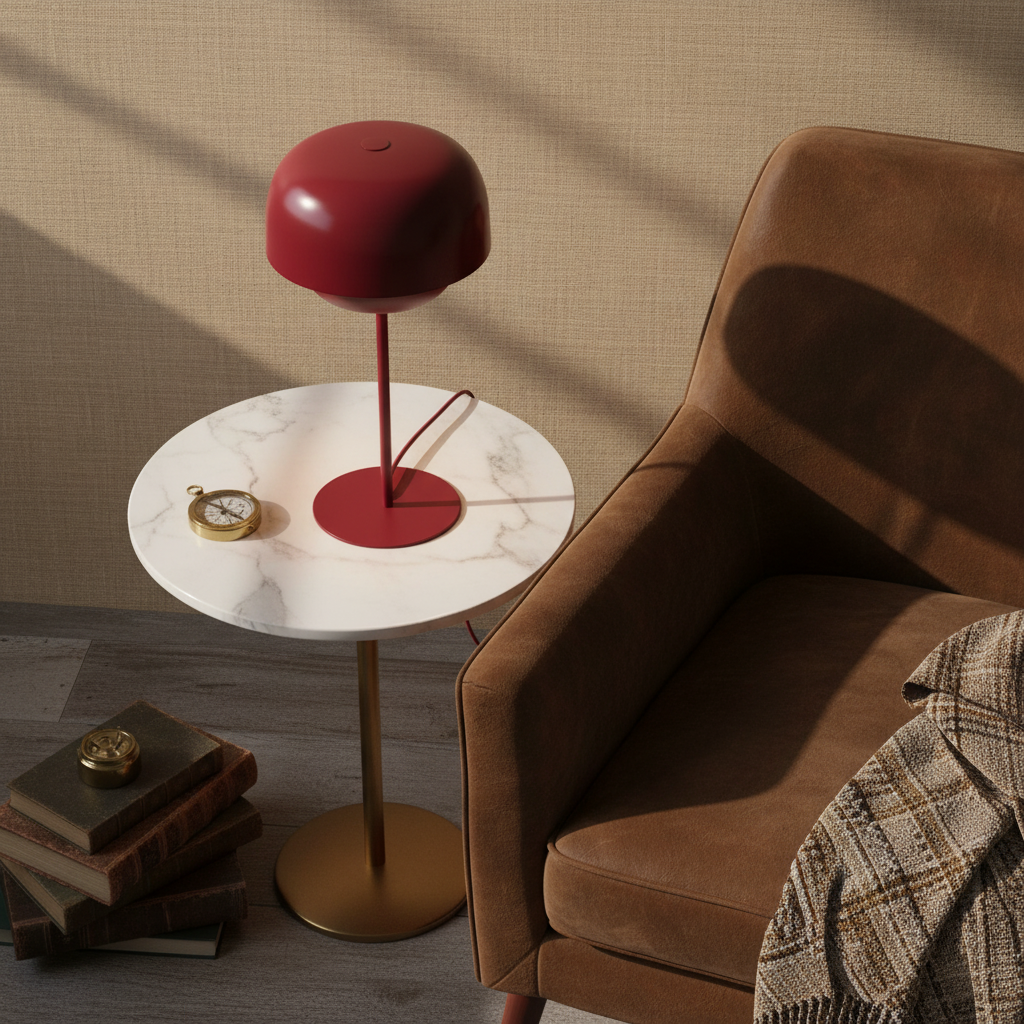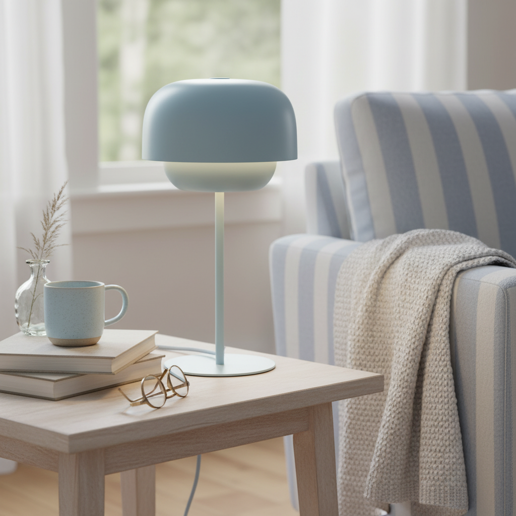 De Soteria Tafellamp combineert een slanke koepelsilhouet met levendige afwerkingen voor een speelse maar verfijnde uitstraling. Het strakke ontwerp verlicht bureaus, nachtkastjes en gezellige leeshoekjes.