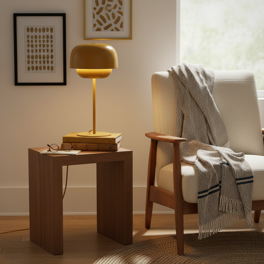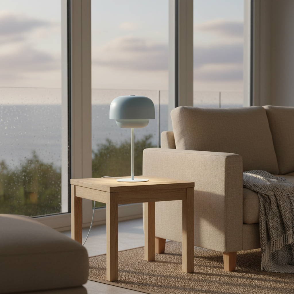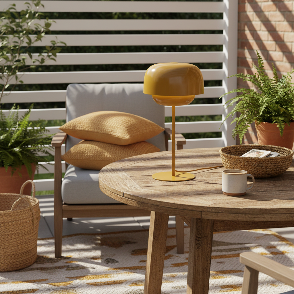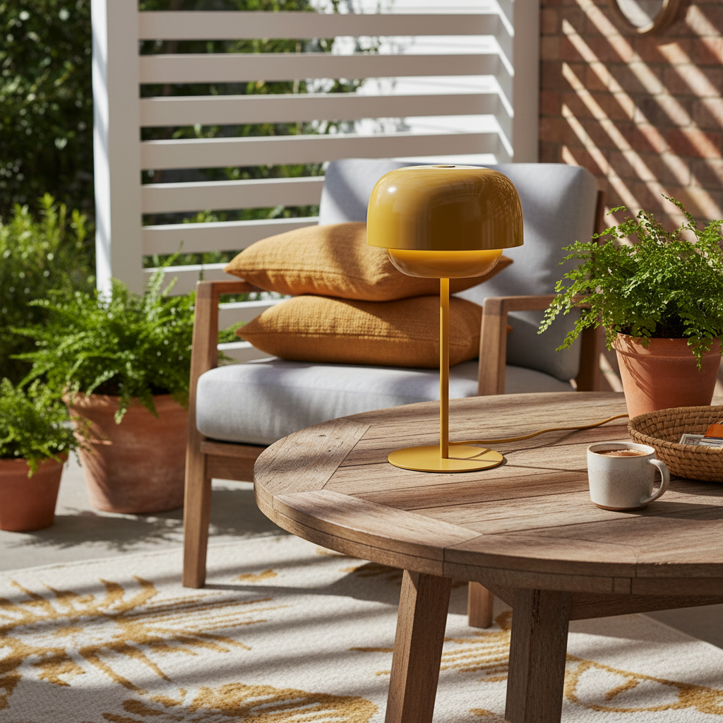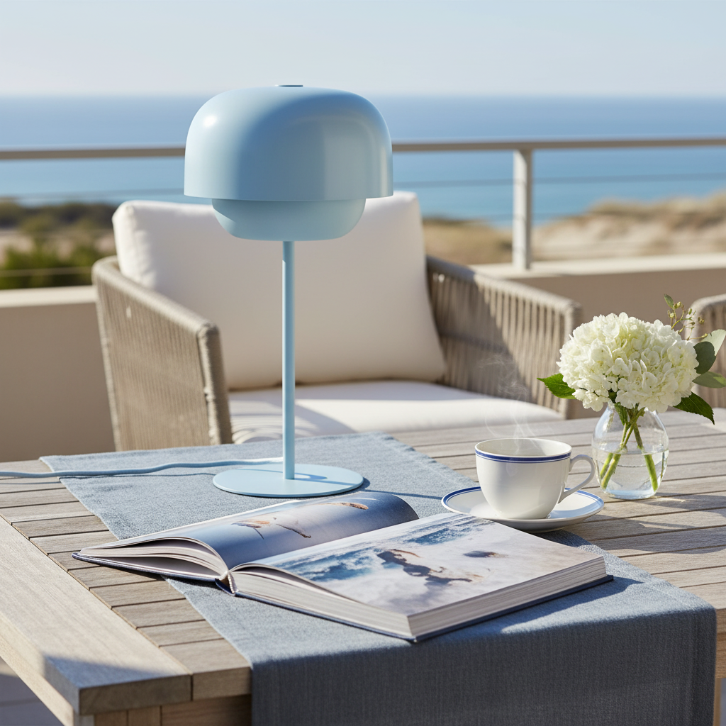 De Soteria Tafellamp combineert een slanke koepelsilhouet met levendige afwerkingen voor een speelse maar verfijnde uitstraling. Het strakke ontwerp verlicht bureaus, nachtkastjes en gezellige leeshoekjes.