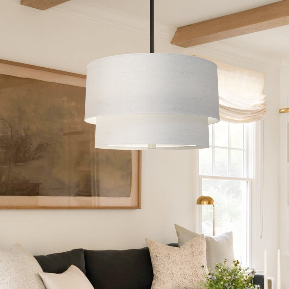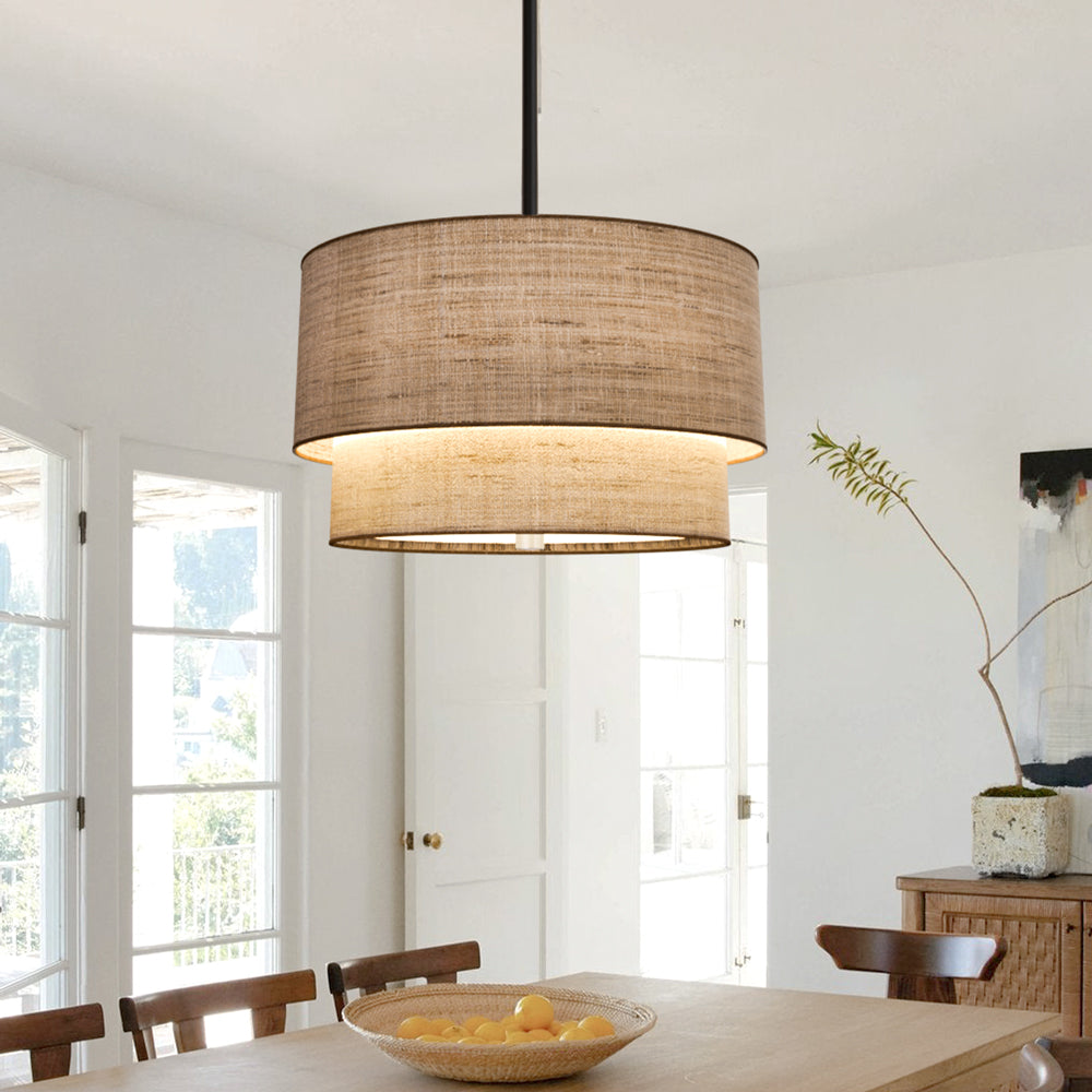 Bring soft elegance and natural warmth to your space with this double-layered linen drum chandelier. Ideal for dining rooms, bedrooms, and living areas, this fixture blends timeless design with a cozy modern touch.