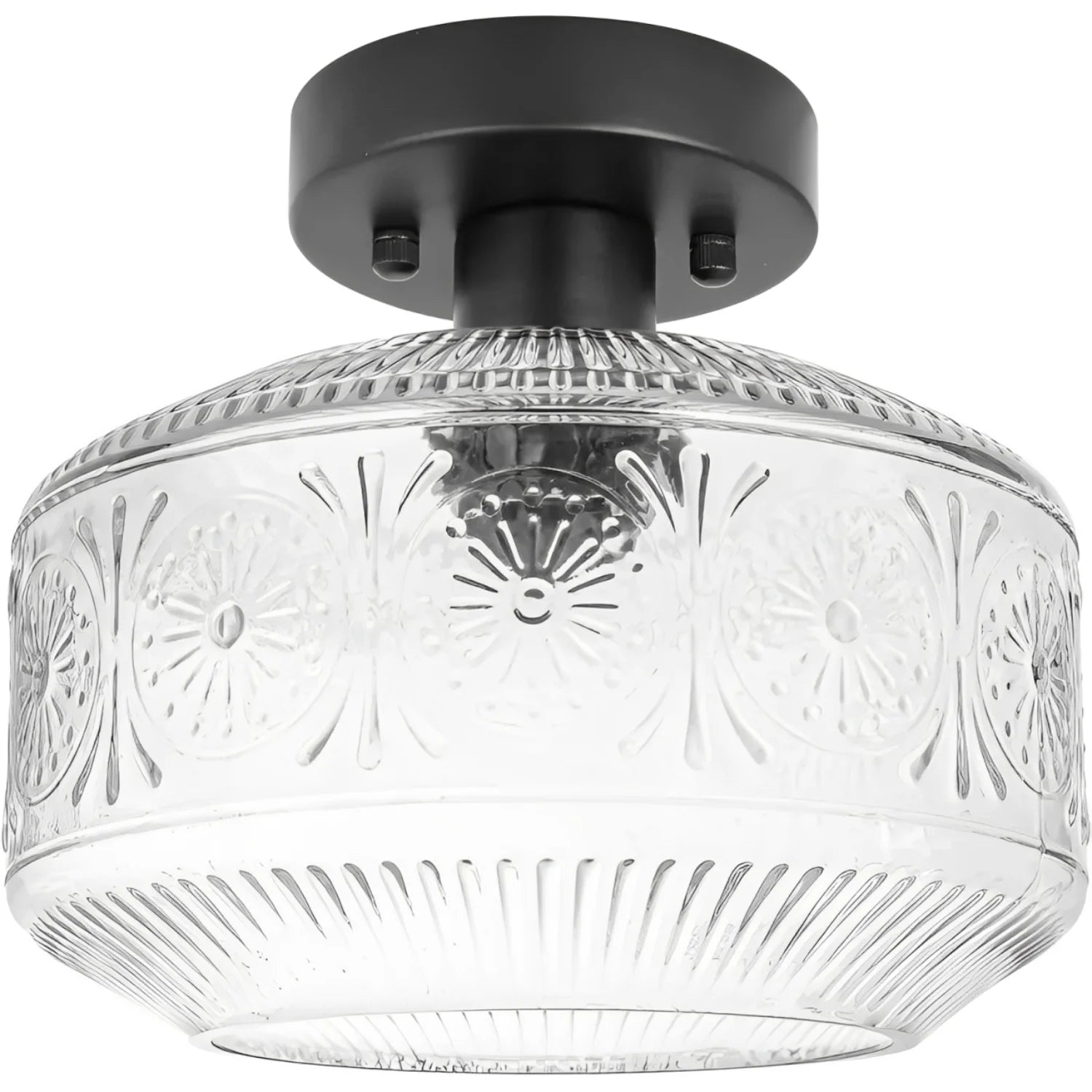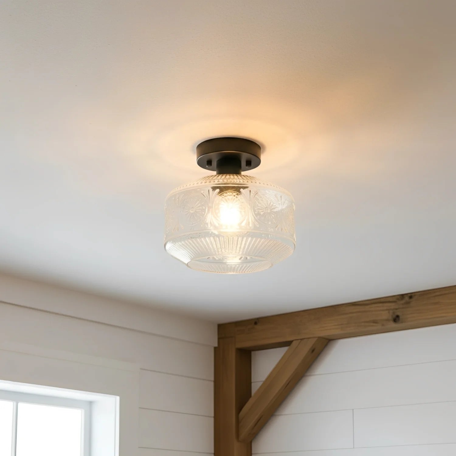 Corin Retro Textured Glass Semi-Flush Ceiling Light