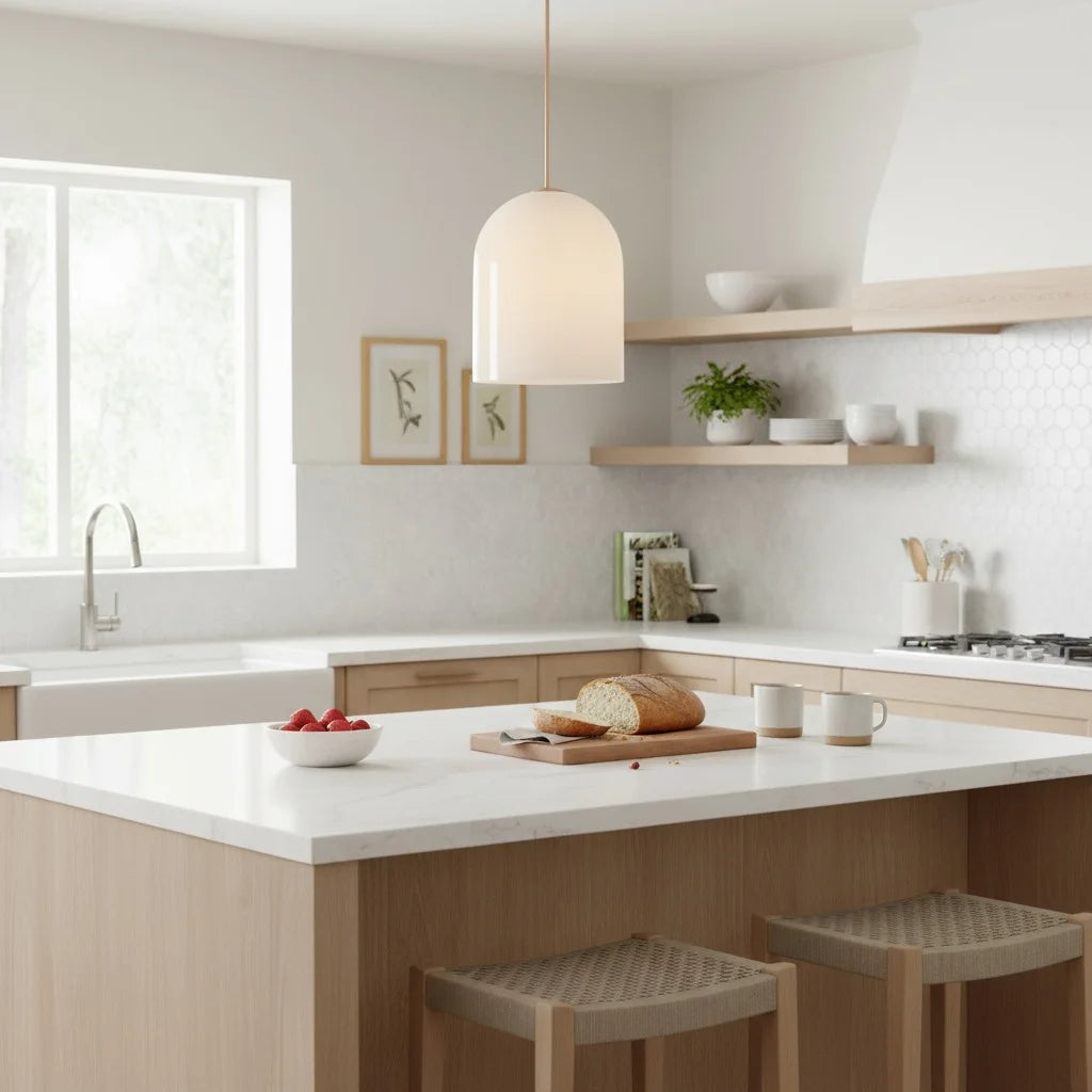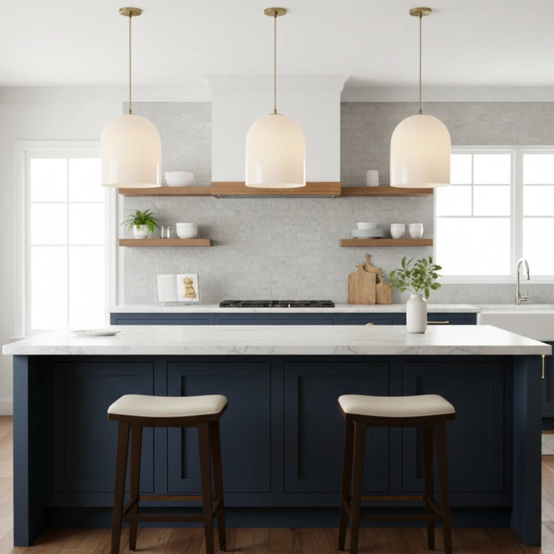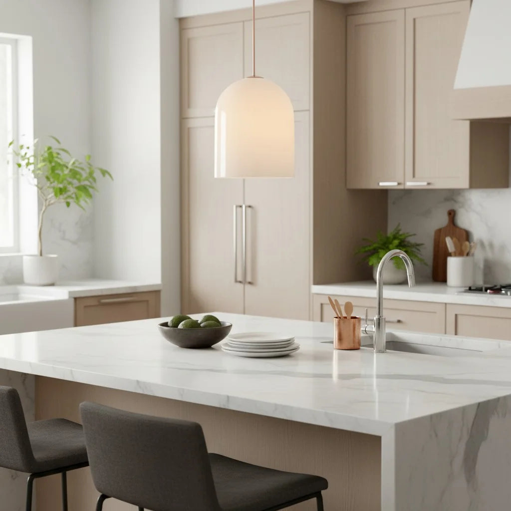 The Elly Champagne Glass Pendant showcases modern minimalist aesthetics, creating a refined focal point above dining areas and kitchen islands.
