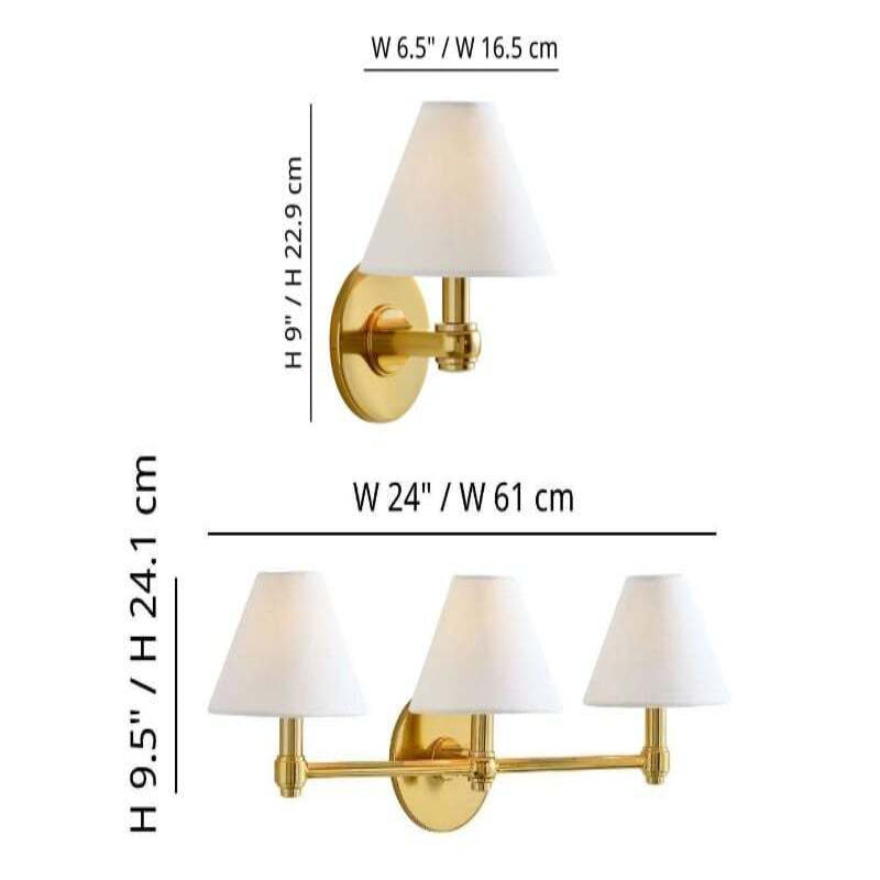 Everett 3-light Modern Fabric Cone Shade Metal Wall Sconce