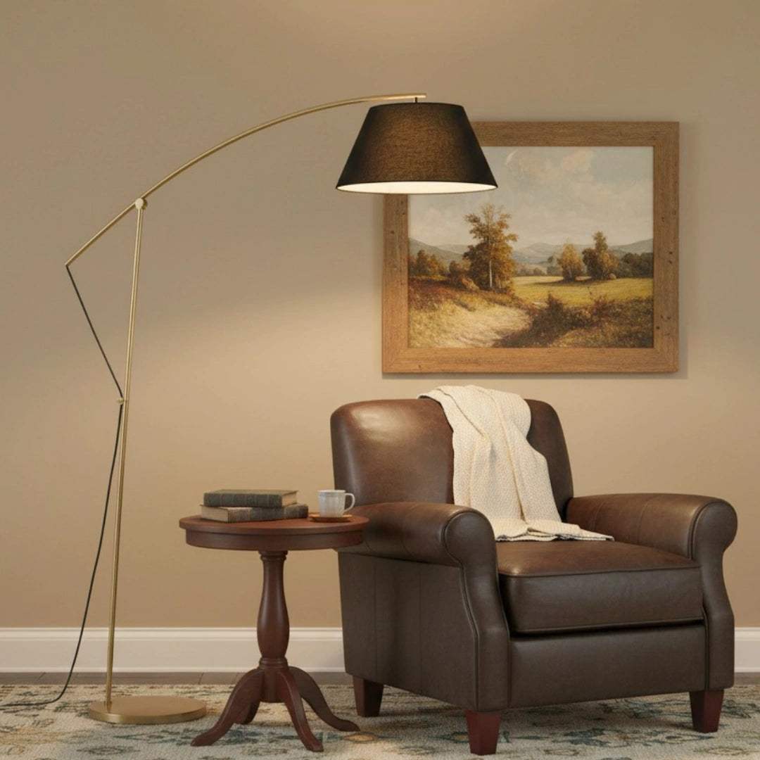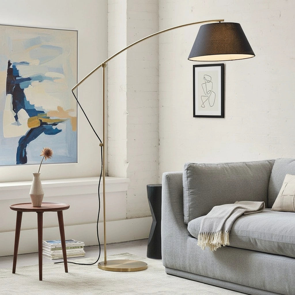With its minimalist form and linen fabric shade, this modern metal floor lamp elevates your home's ambiance. Perfectly suited for the living room or study.