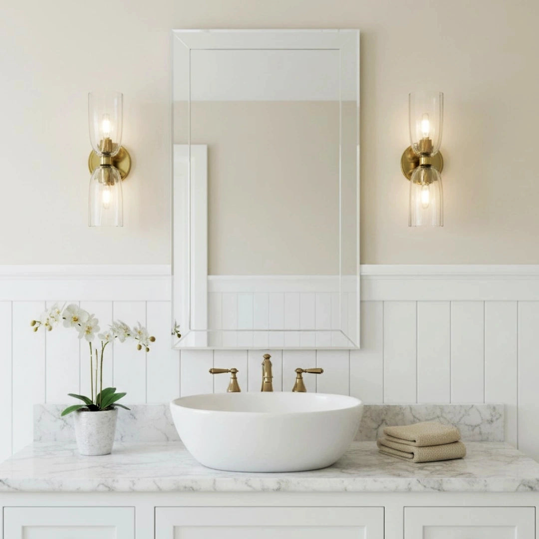 With its refined ribbed glass shade, this 2-Light Wall Sconce introduces a clean, modern statement to your bathroom, bedroom or study.