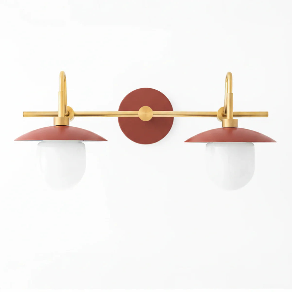 The Modern Creative Colored Vanity Light brings playful elegance to your home with its Scandinavian-inspired design. Featuring two 7-inch flat metal shades paired with white glass globes, it balances minimalism with artistic charm. Available in multiple color finishes, this fixture offers a fresh, contemporary accent that complements any décor. Perfect for bedrooms, bathrooms, or dressing areas.