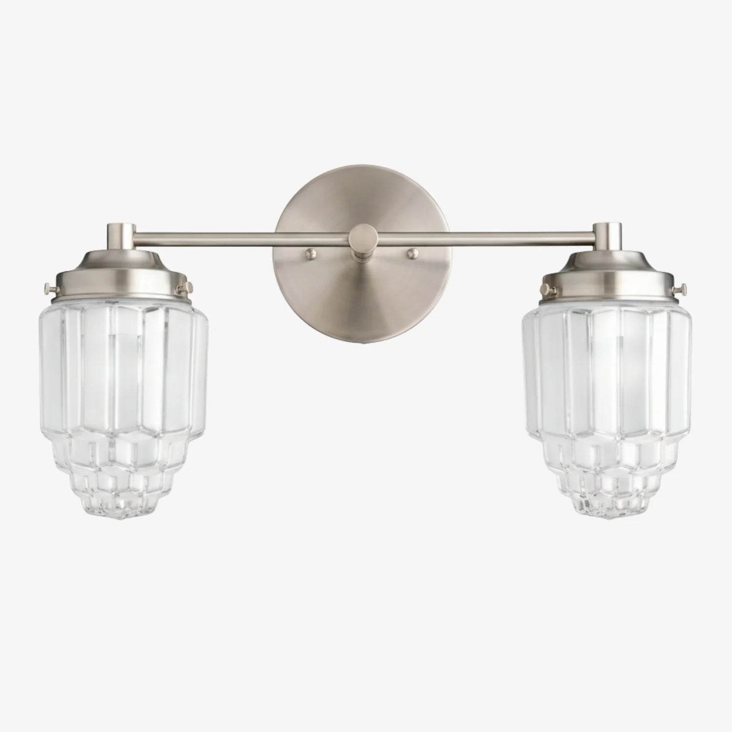 The Vanity Light brings timeless elegance to your interior with its frosted glass shade inspired by Art Deco skyscraper forms. Available in three refined finishes, it offers both versatility and style. Compatible with a dimmer switch, it allows you to create the perfect ambiance. Ideal for bedrooms, bathrooms, and hallways alike.