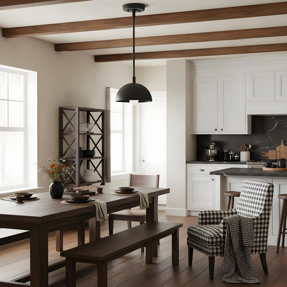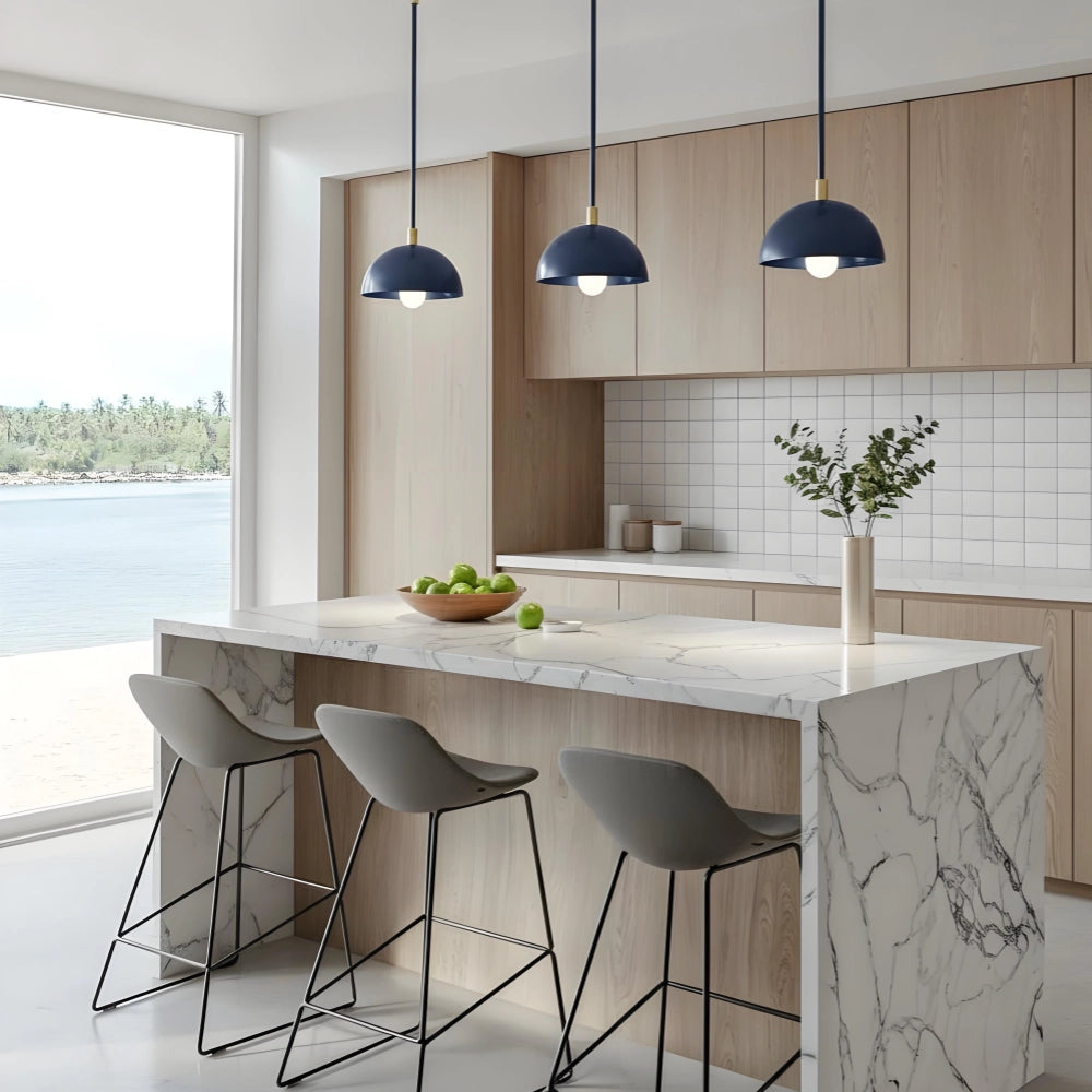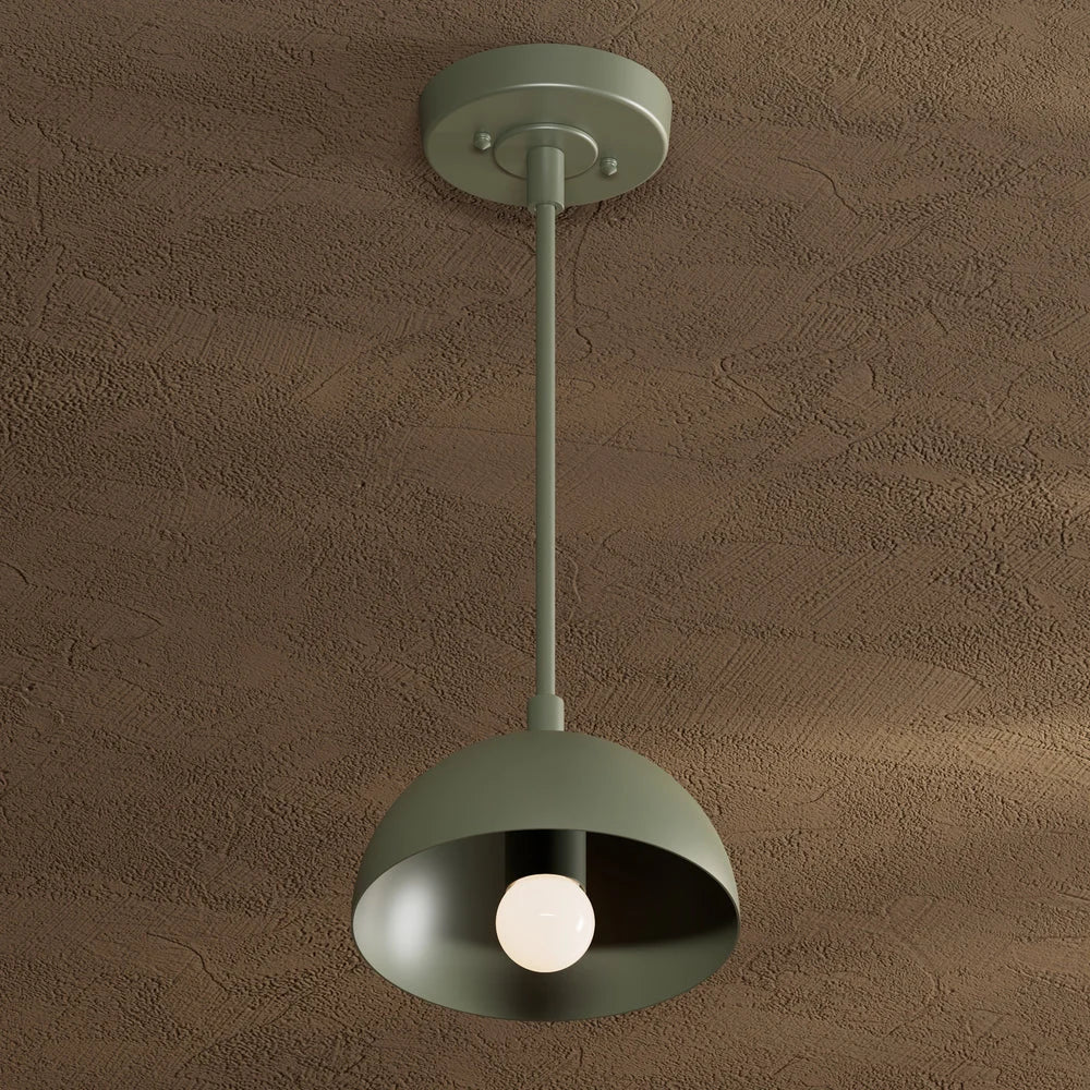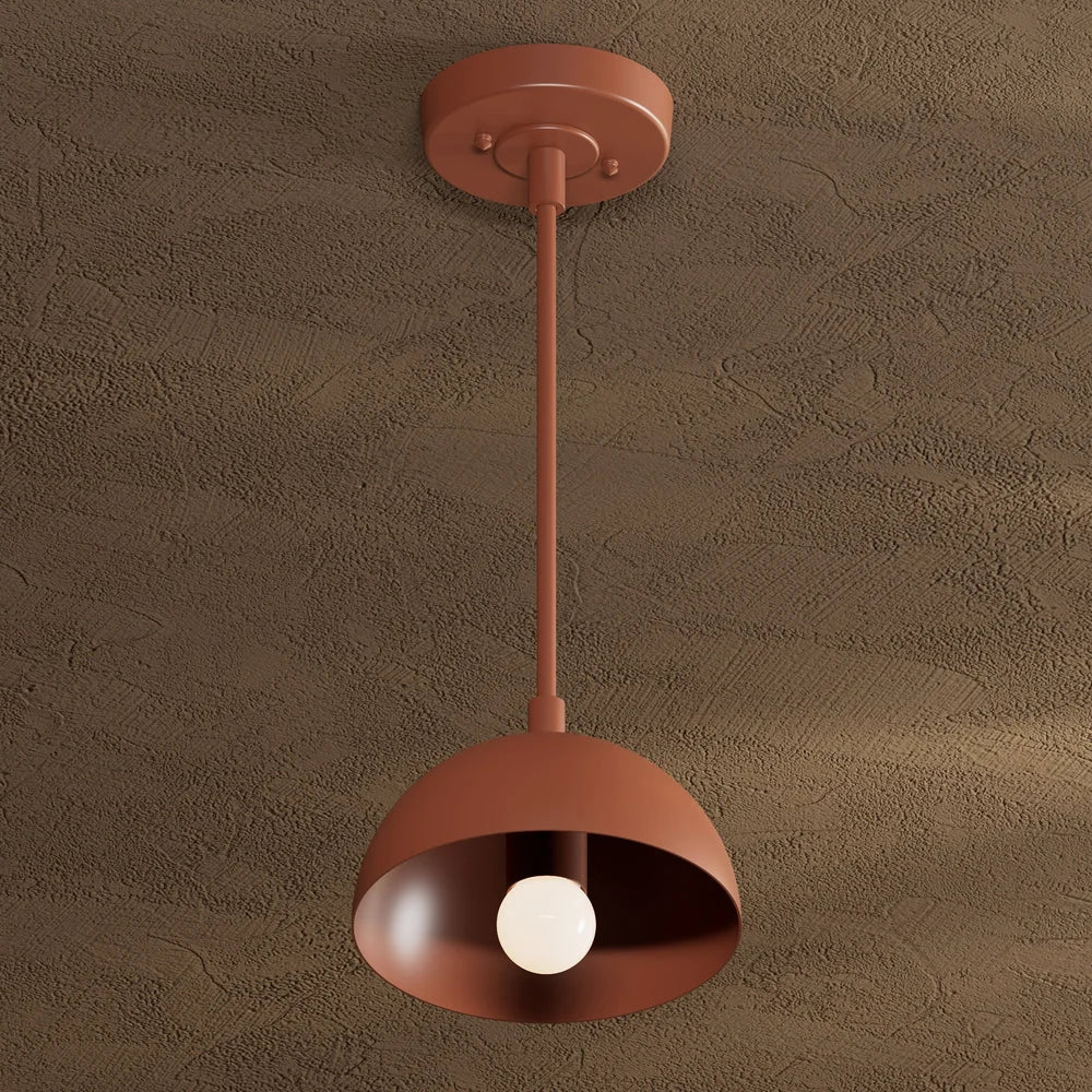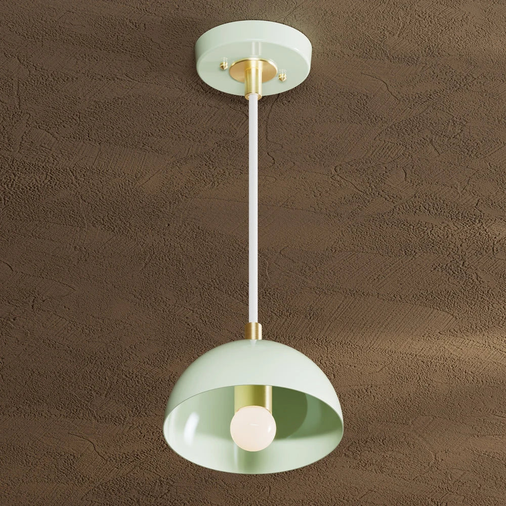 The pendant light boasts a sleek dome design. With various color options, it infuses modern charm into any space, Perfect for kitchens, or dining areas.