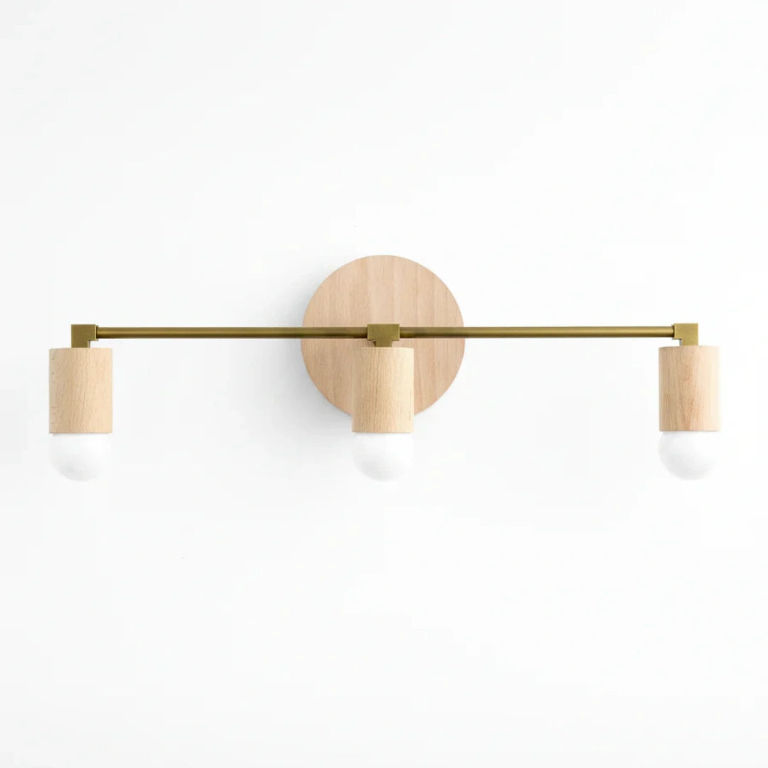 The Rustic Minimalist Wood Vanity Light showcases a charming Bohemian-inspired design with a natural unfinished beech wood base that highlights organic texture and warmth. Its minimalist three-bulb layout provides balanced illumination while adding a touch of handcrafted character to your space. Perfect for bedrooms, bathrooms, or cozy living areas seeking a natural, inviting ambiance.
